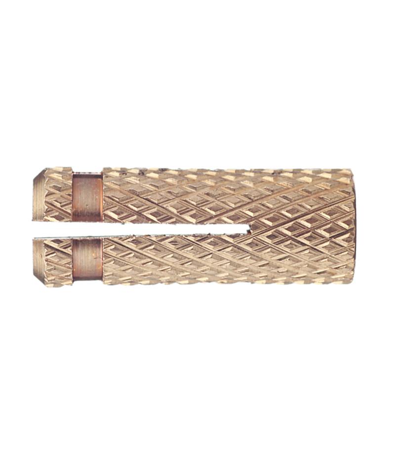 резьбовая часть гильзы имеет коническую форму. Наружная сторона латунного анкера имеет ребристую поверхность, для предотвращения проворачивания при монтаже. При закручивании болта или шпильки распорные элементы латунного анкера расширяются и прижимаются наружной шероховатой стороной к материалу основания. Забивной латунный анкер обладает высокой антикоррозионной стойкостью.
