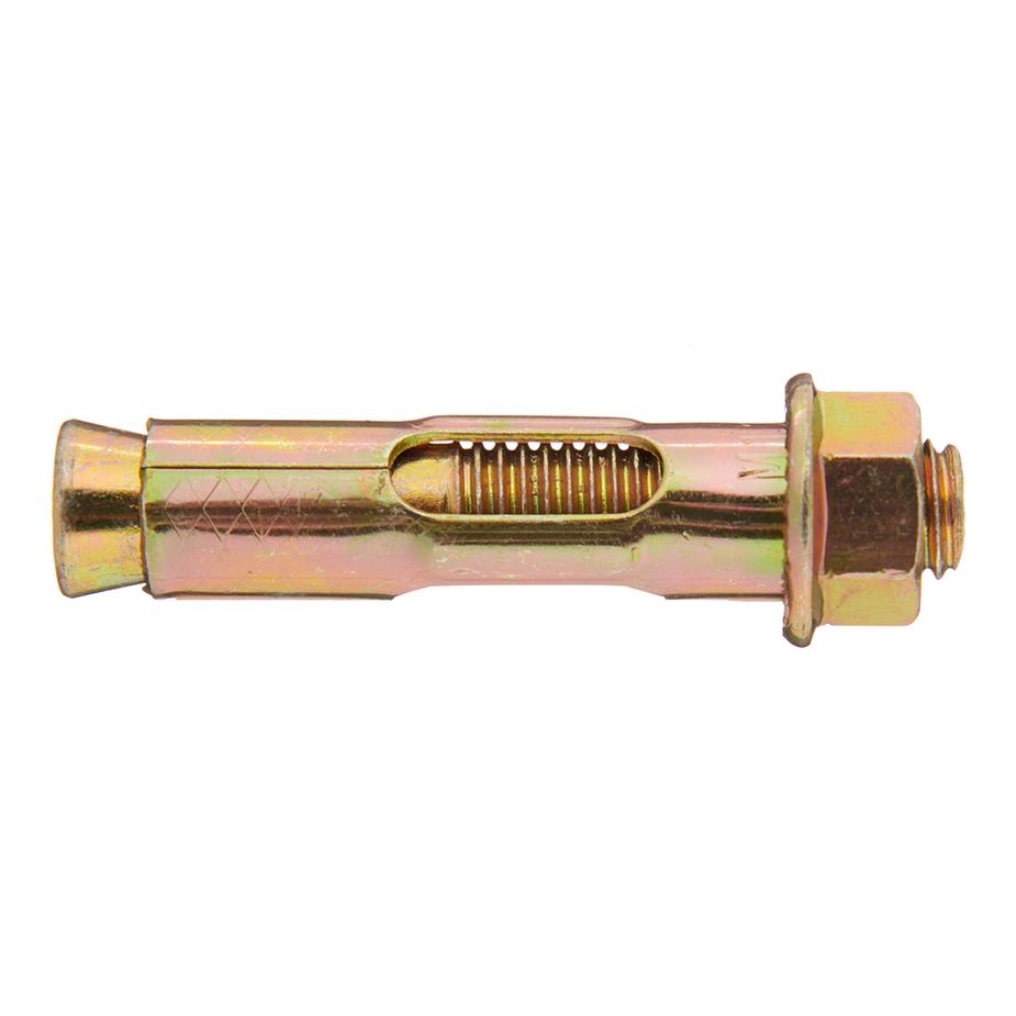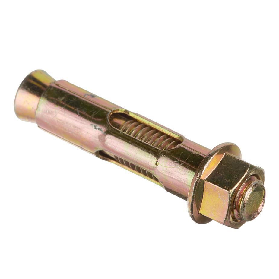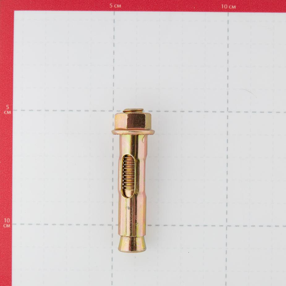 Предназначен для крепления различных конструкций – отбойников, лифтов и подъёмников, колонн и опор, фахверков, элементов фасадных конструкций и прочих элементов к основанию из бетона, природного камня или полнотелого кирпича. Оцинкованное покрытие обеспечит защиту от коррозии. Анкерный болт с гайкой (втулочный анкер) оснащен фиксирующей гильзой длина которой равна размерам стального стержня. На хвостовой части шпильки выполнена клинообразная головка. При завинчивании гайки она смещается по резьбовой части. В результате перемещения происходит распирание втулки. Конструктивные особенности такого вида крепежа позволяют использовать его в легких видах бетонов с ячеистой структурой, а также в кирпиче, изготовленном из обожженной глины.