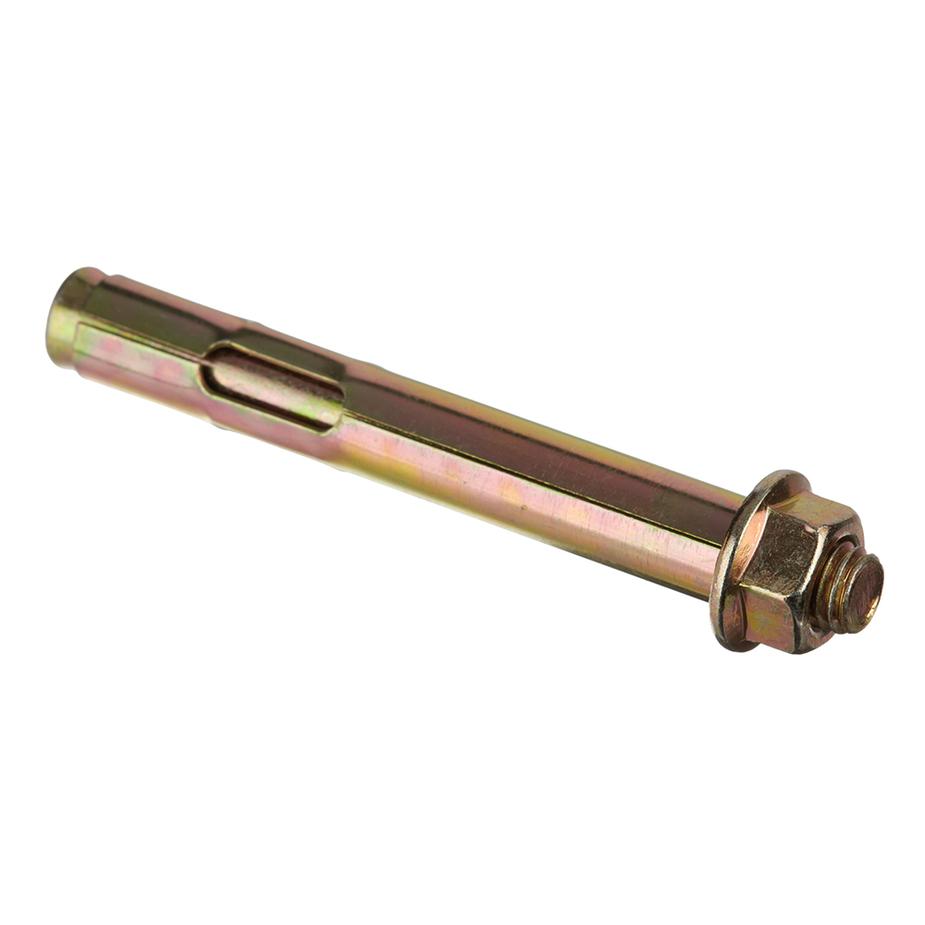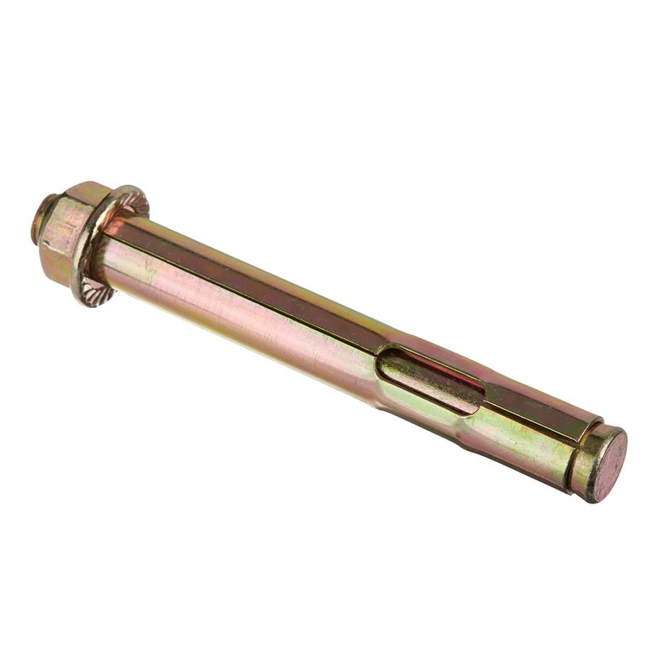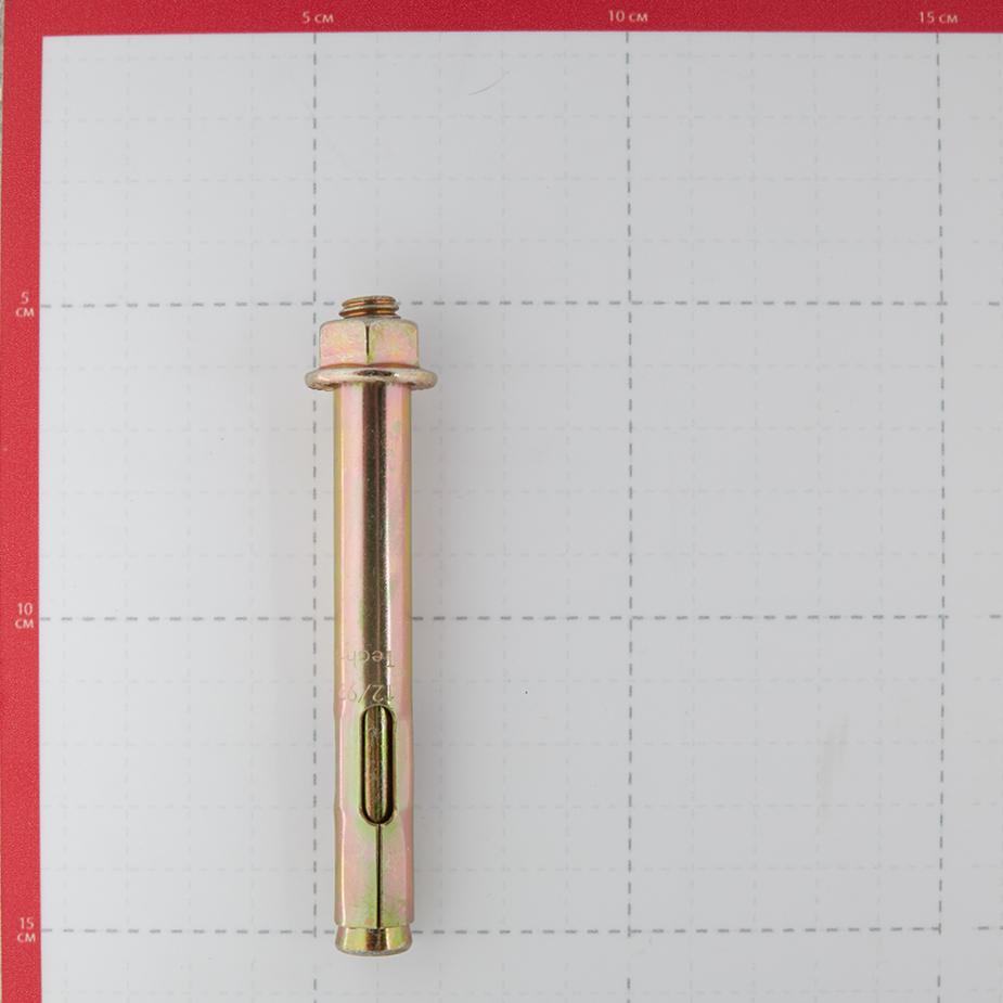 Предназначен для крепления различных конструкций – отбойников, лифтов и подъёмников, колонн и опор, фахверков, элементов фасадных конструкций и прочих элементов к основанию из бетона, природного камня или полнотелого кирпича. Оцинкованное покрытие обеспечит защиту от коррозии. Анкерный болт с гайкой (втулочный анкер) оснащен фиксирующей гильзой, длина которой равна размерам стального стержня. На хвостовой части шпильки выполнена клинообразная головка. При завинчивании гайки она смещается по резьбовой части. В результате перемещения происходит распирание втулки. Конструктивные особенности такого вида крепежа позволяют использовать его в легких видах бетонов с ячеистой структурой, а также в кирпиче, изготовленном из обожженной глины.