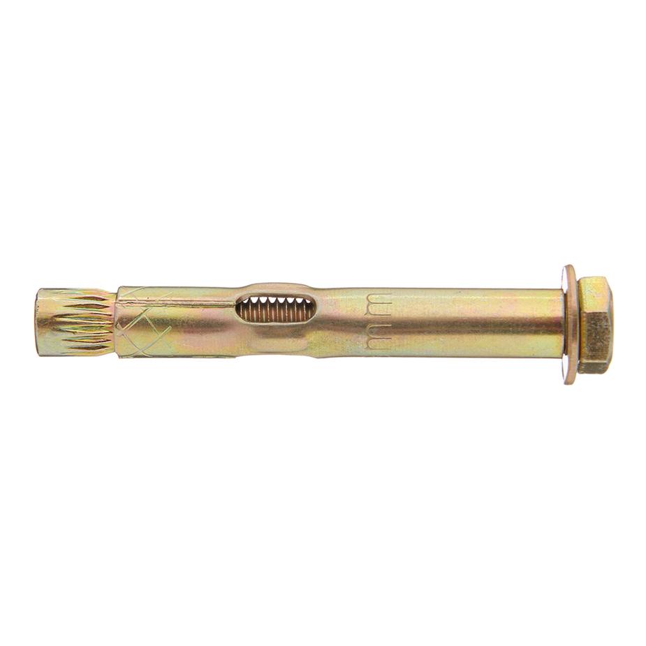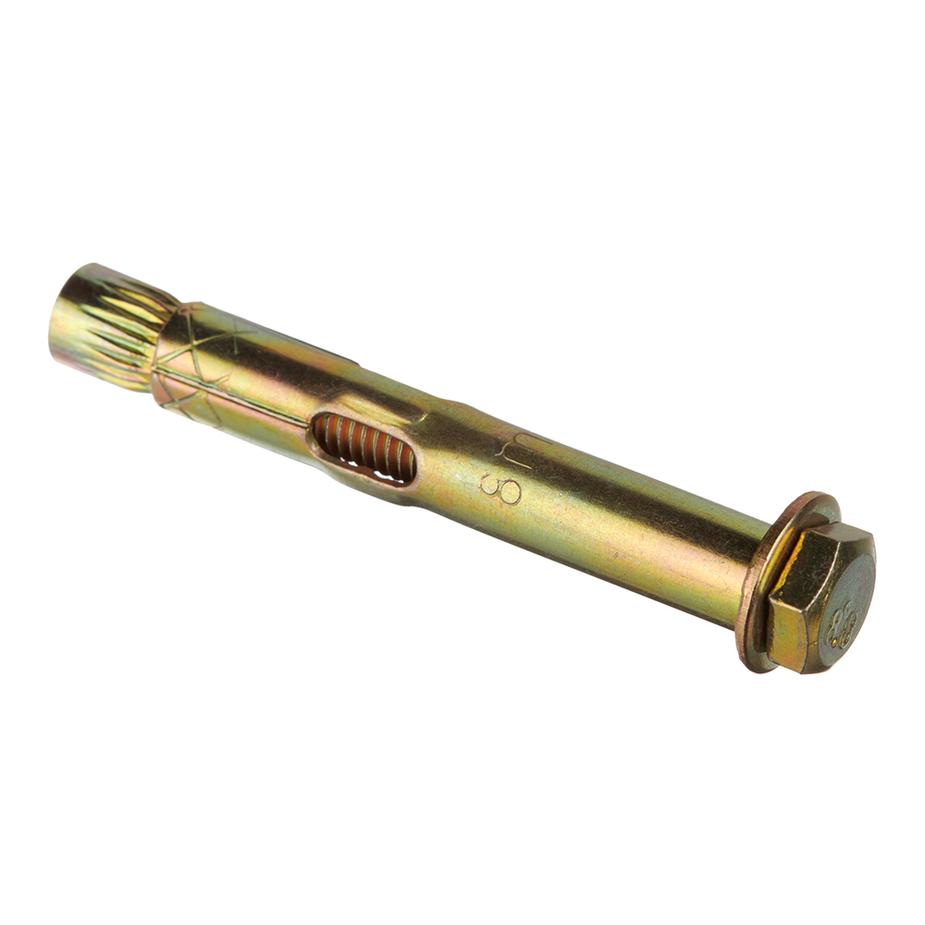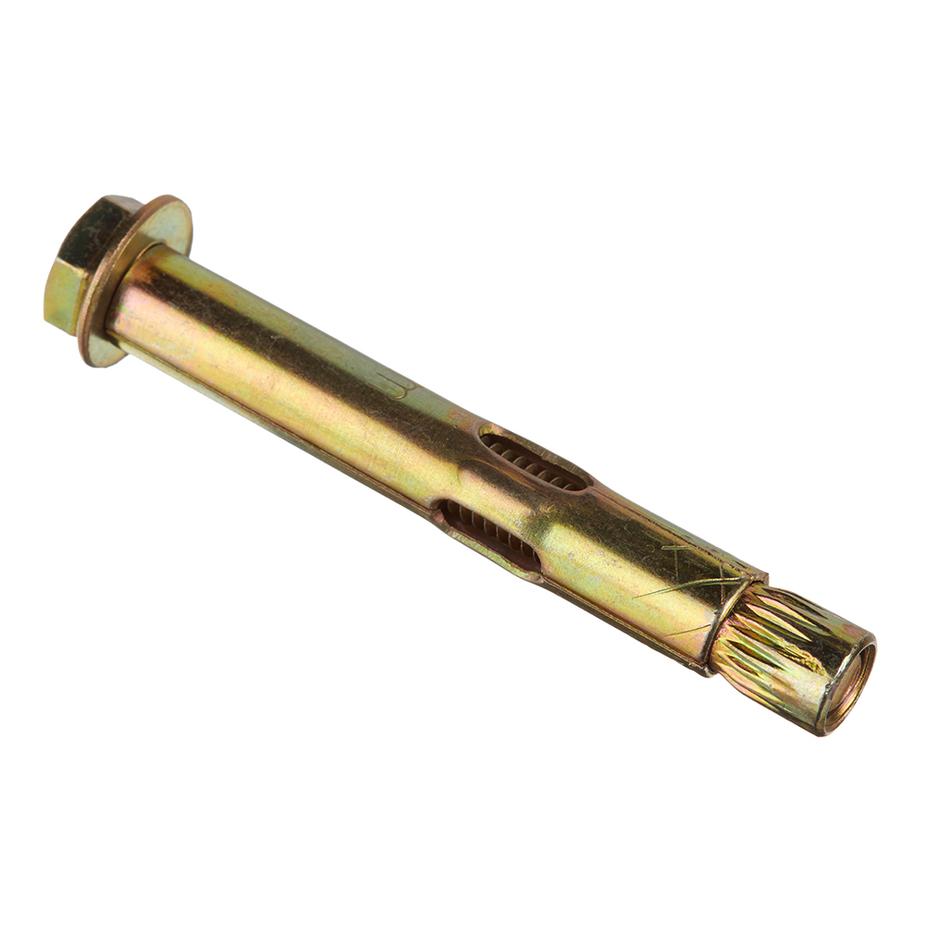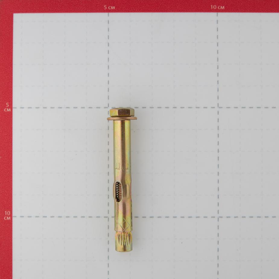 Предназначен для крепления различных конструкций – отбойников, лифтов и подъёмников, колонн и опор, фахверков, элементов фасадных конструкций и прочих элементов к основанию из бетона, природного камня или полнотелого кирпича. Оцинкованное покрытие обеспечит защиту от коррозии. Анкерный болт распорного типа представляет собой модернизированный вариант втулочного фиксатора (анкерного болта с гайкой), но имеет более сложную конструкцию. Продольные разрезы на разжимной гильзе делят ее поверхность на четыре лепестка, которые под воздействием распорного элемента частично раскрываются, увеличивая размер поперечного сечения. Изделие используется в полом кирпиче и легких видах бетонов.