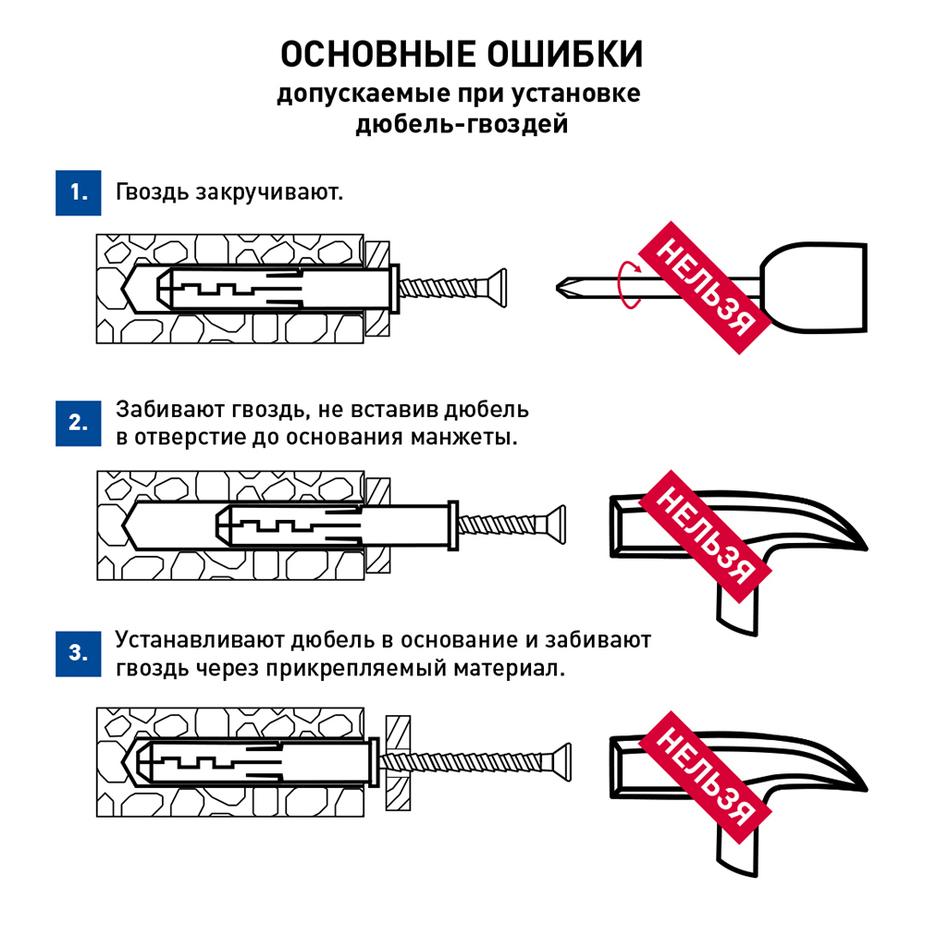 Просверлите отверстие, установите дюбель до основания манжеты, забейте молотком.
