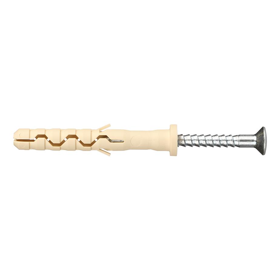 Предназначен для легких креплений (небольшие нагрузки) в твердые материалы: полнотелый кирпич, бетон, природный камень. Нейлон обеспечивает надежное сцепление с материалом основания. Резьбовой оцинкованный гвоздь повышенной прочности заранее установлен в дюбель.