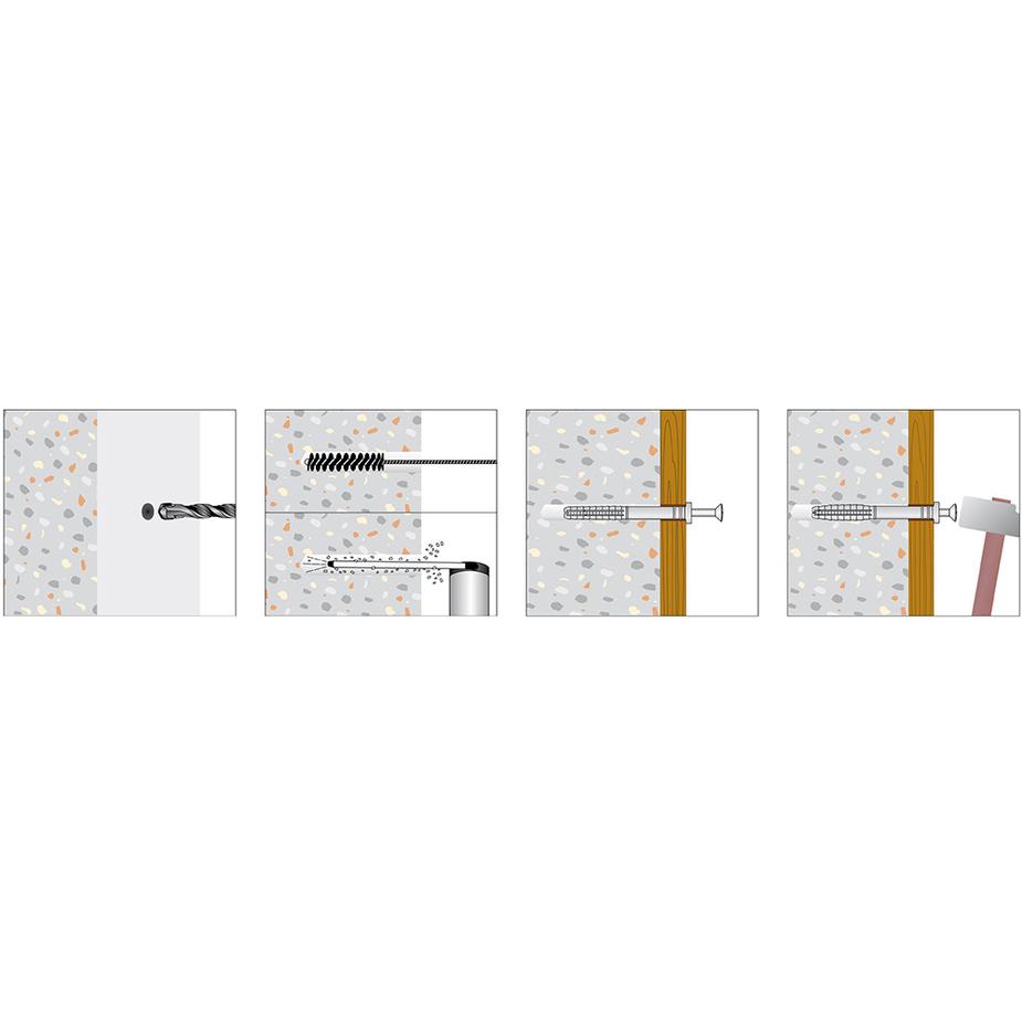 Установка производится ударным способом, что значительно экономит время, обеспечивая быстрый серийный монтаж. требуется перфоратор (ударная дрель) и молоток.
