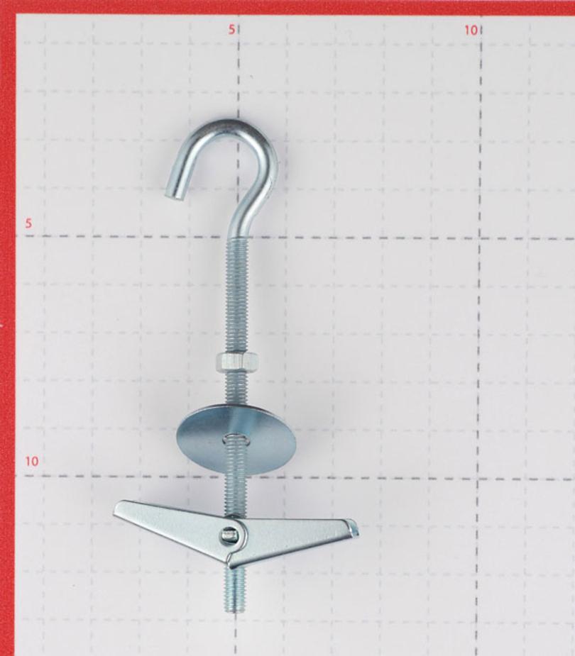Предназначен для крепления легких конструкций к гипсокартонным плитам, древесностружечным плитам, а также к другим пустотелым строительным материалам. Дюбель состоит из стержня с метрической резьбой, складных стопорных крыльев, пружинного механизма. В пустоте пружинный механизм дюбеля автоматически раскрывает стопорные крылья, образуя надежную опору.