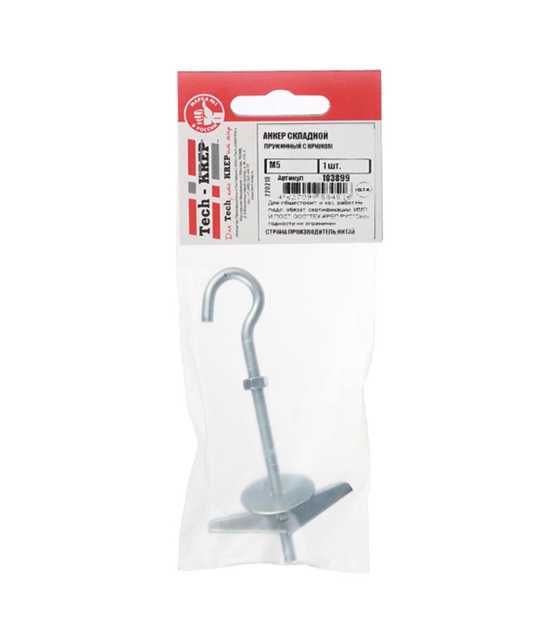 Дюбель складной пружинный L-образный крюк M5 100×16 мм (1 шт.)