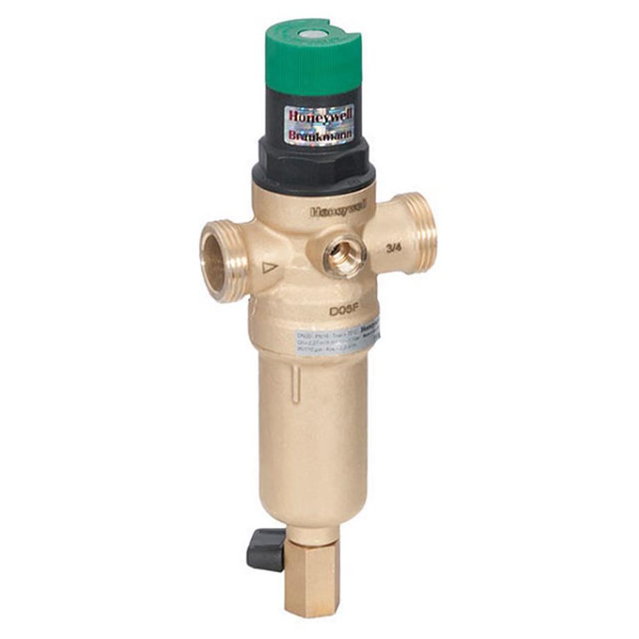 Фильтр Braukmann для воды горячей со встроенным редуктором давления для предварительной очистки горячей воды от механических примесей – частиц ржавчины, волокон пеньки, песчинок, защиты сантехники, бытовой техники подключенной к водопроводу. Фильтр редуктор Braukmann для воды горячей представляет собой комбинацию промывного фильтра с клапаном понижения давления. Встроенный в корпус клапан понижения давления позволяет защитить магистрали и устройства водопотребления от нежелательных колебаний давления, а также уменьшить расход воды. Выходное давление регулируется в пределах от 1,5 бар (0,15 МПа) до 6,0 бар (0,6 МПа). На корпусе с двух сторон предусмотрены посадочные места для подключения манометра, позволяющего визуально отслеживать давление воды на выходе. Регулирующая пружина клапана с водой не контактирует. Седло клапана сбалансировано. Фильтр с редуктором давления Braukmann для воды горячей со встроенным клапаном оказывает давление мембраны уравновешено давлением регулирующей пружины. Это означает, что выходное давление возрастает до тех пор, пока усилия мембраны и действующей в противовес регулирующей пружины не будут уравновешены. Величина давления на входе не влияет на открывание или закрывание клапана, вследствие чего изменение входного давления не оказывает влияния на давление выходное. В обычном режиме вода проходит через фильтрующий элемент по направлению к выпускному отверстию корпуса. Для осуществления промывки необходимо открыть шаровой клапан, выпускающий скопившиеся на дне чаши фильтра примеси подача воды при этом не прерывается. Фильтр имеет большой запас прочности по максимальному рабочему давлению. Сменная фильтрующая сетка изготовлена из нержавеющей стали и, при необходимости, заменяется на другую без демонтажа фильтра. Используется в водоснабжении зданий всех типов, может использоваться в промышленных и коммерческих целях. Монтажное положение фильтра – устанавливается на горизонтальном трубопроводе чашей вниз. Комплектация 2 заглушки 1/4 дюйма под манометр, ключ ZR06F, штуцер 1/4 НР-10 мм.