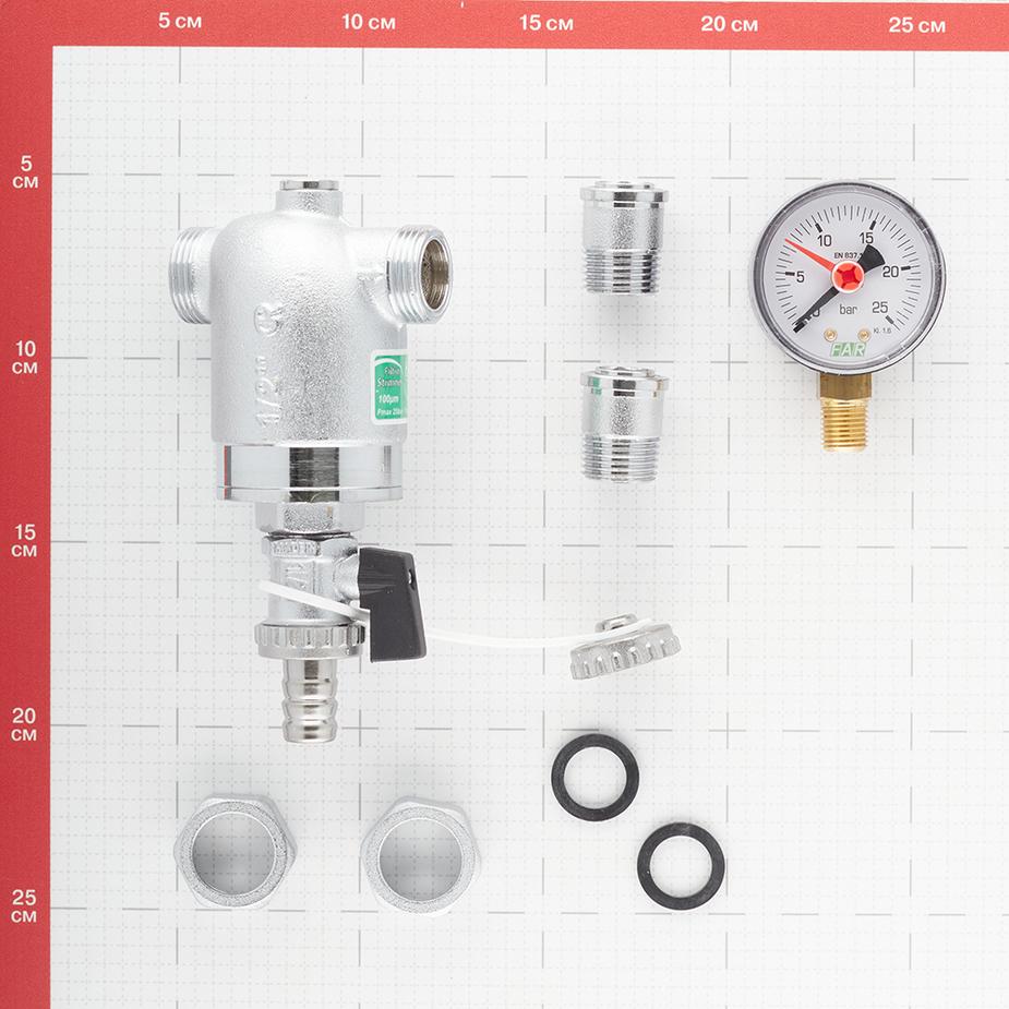 Фильтр промывной Far (FA 3944 12100) 1/2 НР(ш) х 1/2 НР(ш) с манометром