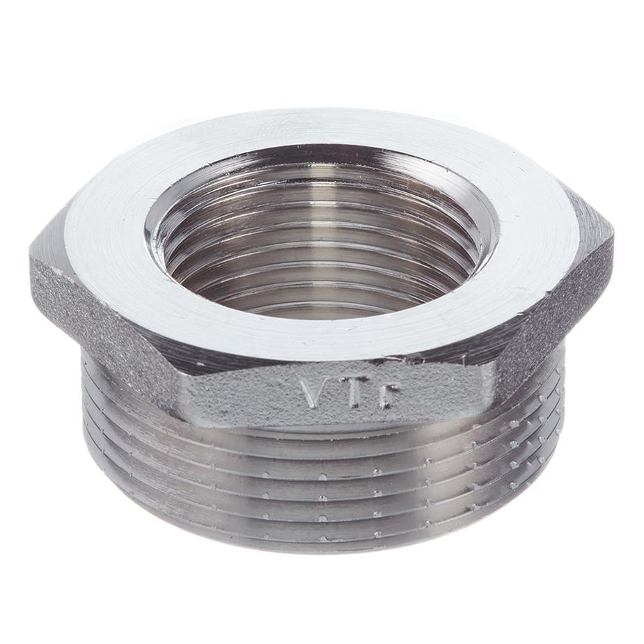 Предназначена для соединения труб разного типоразмера, подключения трубопровода к элементу системы с большим диаметром присоединительного патрубка, ремонт (замену) поврежденной резьбы. Изделие выполнено из латуни марки CW617N, никелировано. Резьба – наружная/внутренняя, по типу – трубная цилиндрическая, совместимая с наружной конической (ГОСТ 6211). Шестигранная головка футорки служит ее вкручиванию гаечным ключом. Размер 1 1/2″х1″ Производитель Китай.