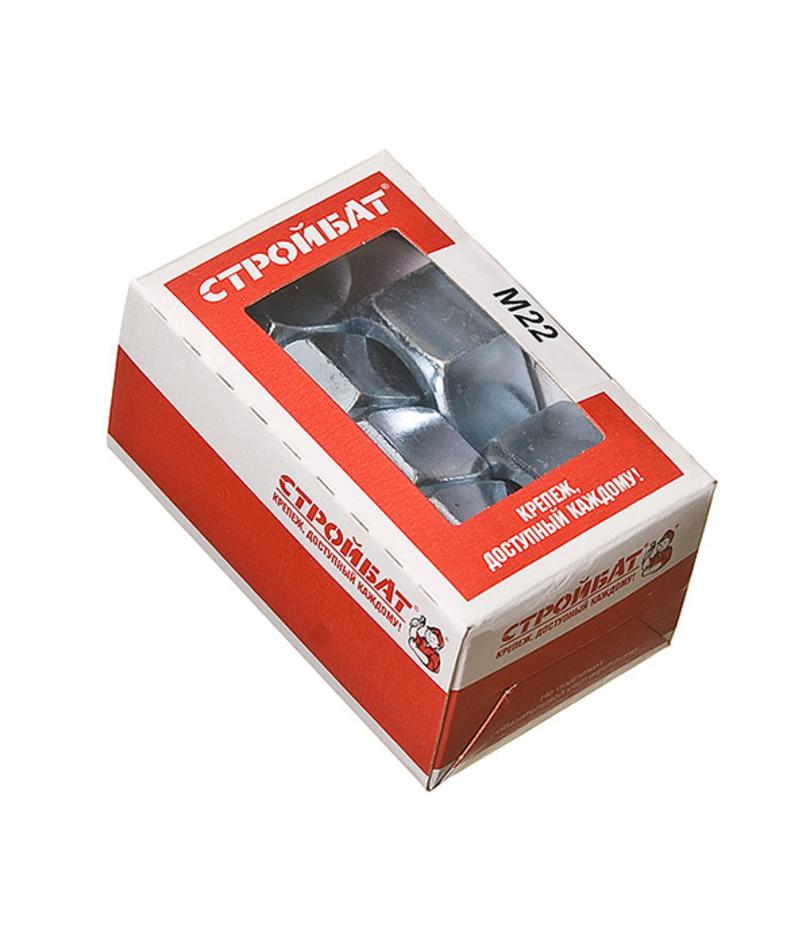 Предназначены для создания разъемного соединения деталей и конструкций в сочетании с болтами соответствующего диаметра. Имеют шестигранную форму (под гаечный ключ) с отверстием, в котором нарезана резьба. Цинковое покрытие защищает от коррозии. Расшифровка маркировки М – метрическая резьба, 22 – внутренний диаметр в мм.