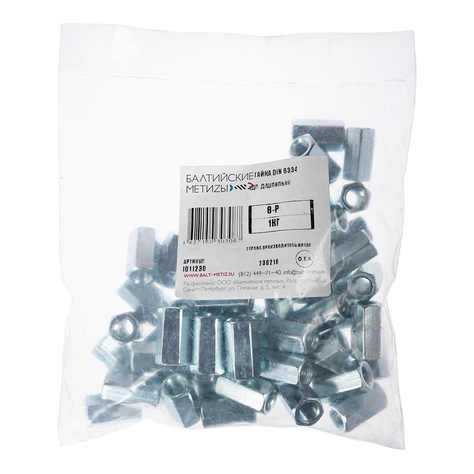 Гайка соединительная оцинкованная M8 х24 мм DIN 6334 (57 шт.) (1 кг)