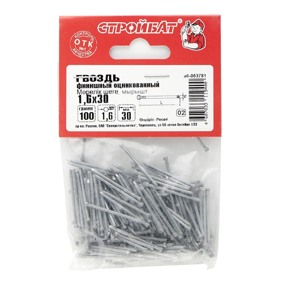 Гвозди финишные 1,6×30 мм оцинкованные (0,1 кг)