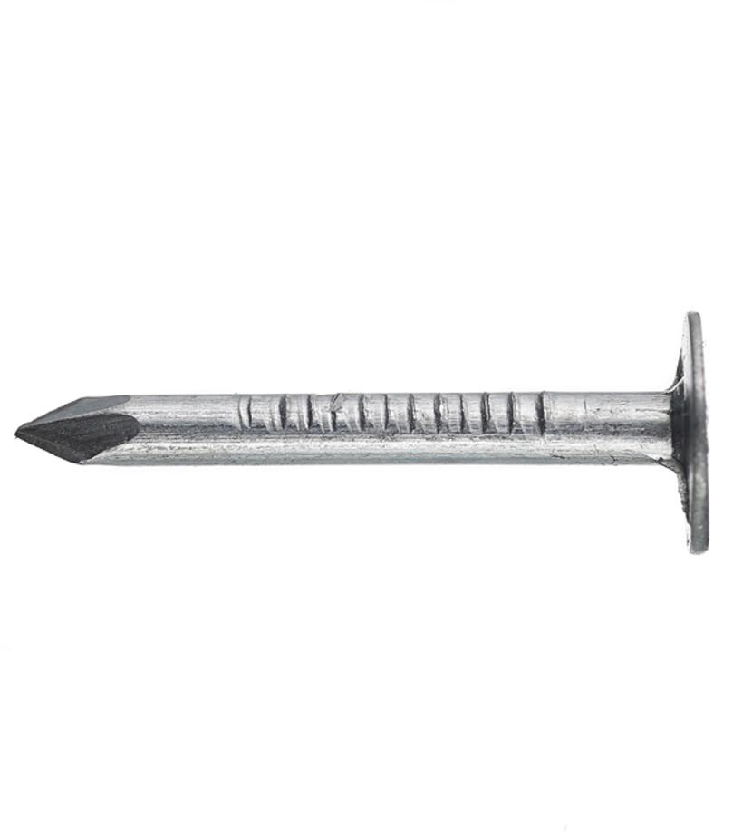 Предназначены для крепления к деревянным поверхностям мягких кровельных материалов (рубероид, битумная черепица и др.). Часто используют такой крепеж для монтажа сайдинга, крепления к деревянным поверхностям листов ДВП и МДФ при обивке стен или мебели. Плоская шляпка увеличенного диаметра, а также наличие неровностей на теле гвоздя рядом со шляпкой обеспечивают прочное и надежное соединение материалов. При использовании в агрессивной среде, во избежание подтеков, необходимо закрывать шляпку гвоздя дополнительным защитным слоем, (краска, шпаклевка) или основным, чистовым материалом. В упаковке ~281 шт (±10%).