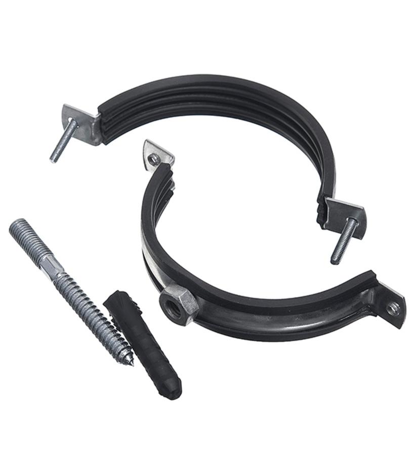 Предназначен для крепления канализационных или иных труб диаметром 110-115 мм к стене или к полу. Состав хомут, шпилька М10 – оцинкованная сталь, уплотнитель – резина, дюбель 12х60 мм – полипропилен.