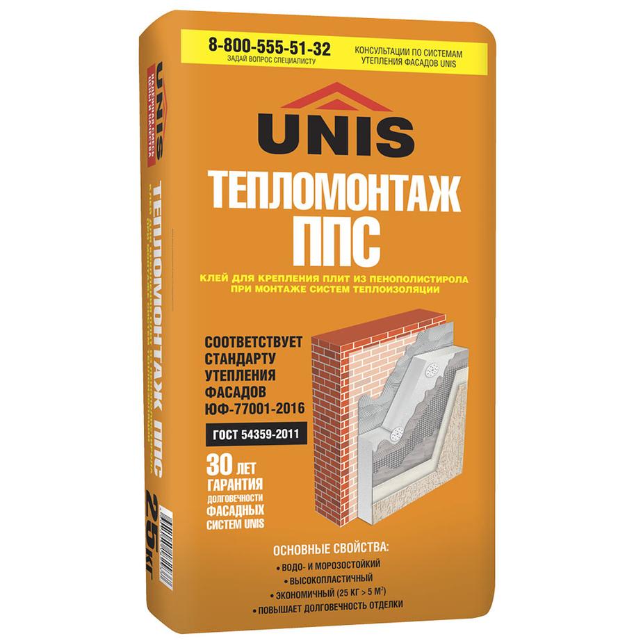 Клей для крепления плит из пенополистерола Unis Тепломонтаж ППС 25 кг