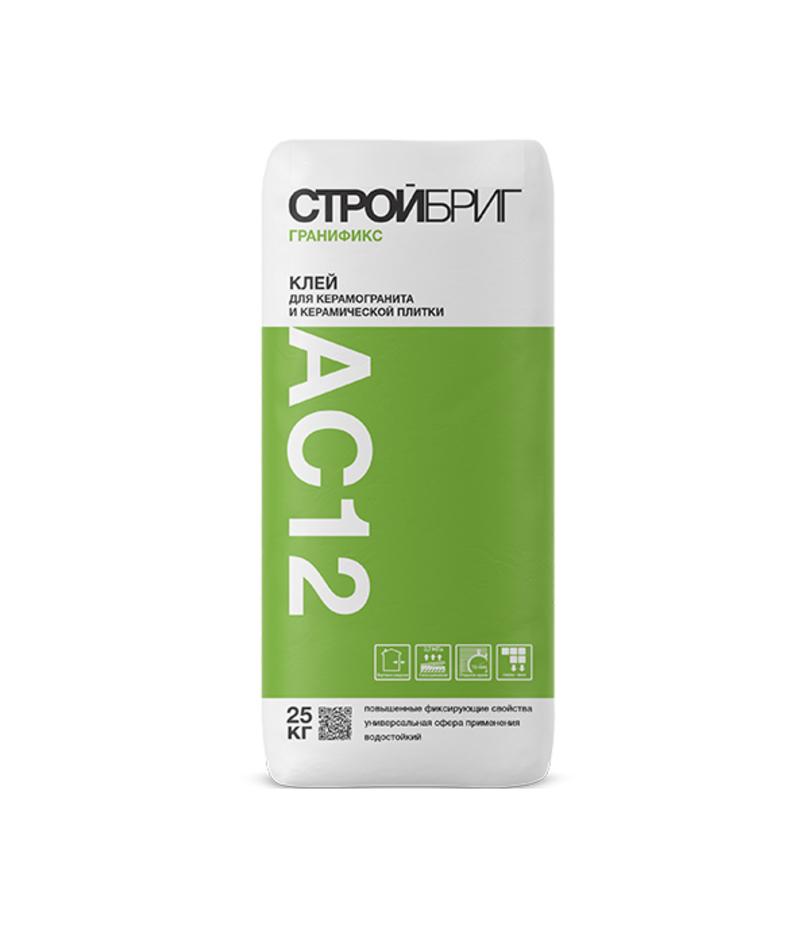 Плиточный клей Стройбриг Гранификс АС12 предназначен для укладки керамической плитки (весом до 500 г/100 см²) на стены и пол в помещениях с нормальной и повышенной влажностью, в том числе для облицовки фасадов зданий. Наносится на бетонные, оштукатуренные, кирпичные, недеформирующиеся основания (пено – и газобетон). Плиточный клей Стройбриг Гранификс АС12 обладает высокой прочностью сцепления с основанием, водо – и морозостойкостью, удобен в работе. Высокая клеящая способность Стройбриг Гранификс АС12 позволяет укладывать плитку сверху вниз, исключая ее сползание. Состав цемент, фракционированный песок и модифицирующие добавки.