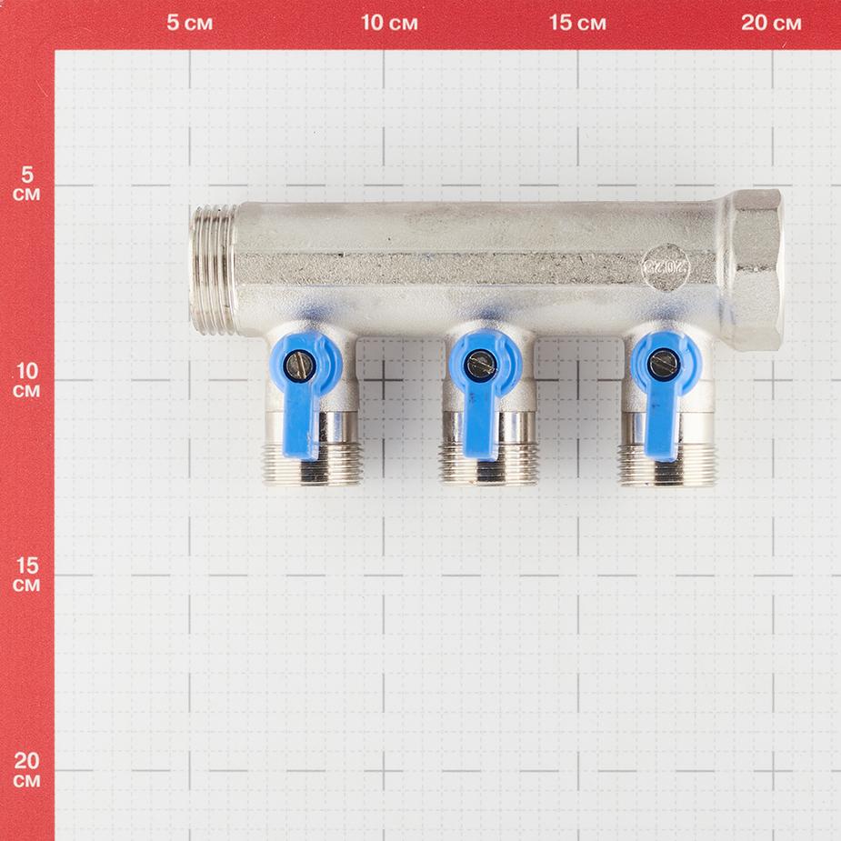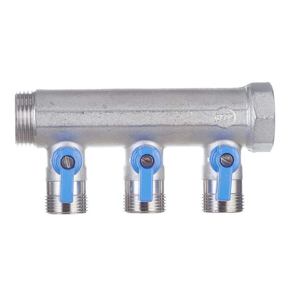 Коллектор Henco (VB060503-BLAUW) 1 ВР(г) х 3 выхода 3/4 НР(ш) ЕК х 1 НР(ш) с шаровыми кранами