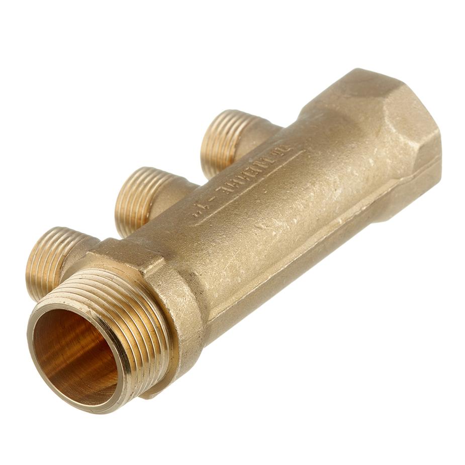 Предназначен для равномерного распределения и поступления воды от главного трубопровода по металлопластиковым трубам к сантехнике и другим потребителям без потери напора воды. Используется для разделения потока воды из одной трубы на три линии, путем присоединения металлопластиковых труб диаметром 16 мм при помощи соединителя прямого 16(пресс) х 1/2″ внутр(г). Имеет с одного входа внутреннюю резьбу 1″ (25 мм) с другого входа наружную резьбу 1″ (25 мм), что позволяет соединять коллекторы между собой, увеличивая количество отводимых линий. Межосевое расстояние между отводами 36 мм.
