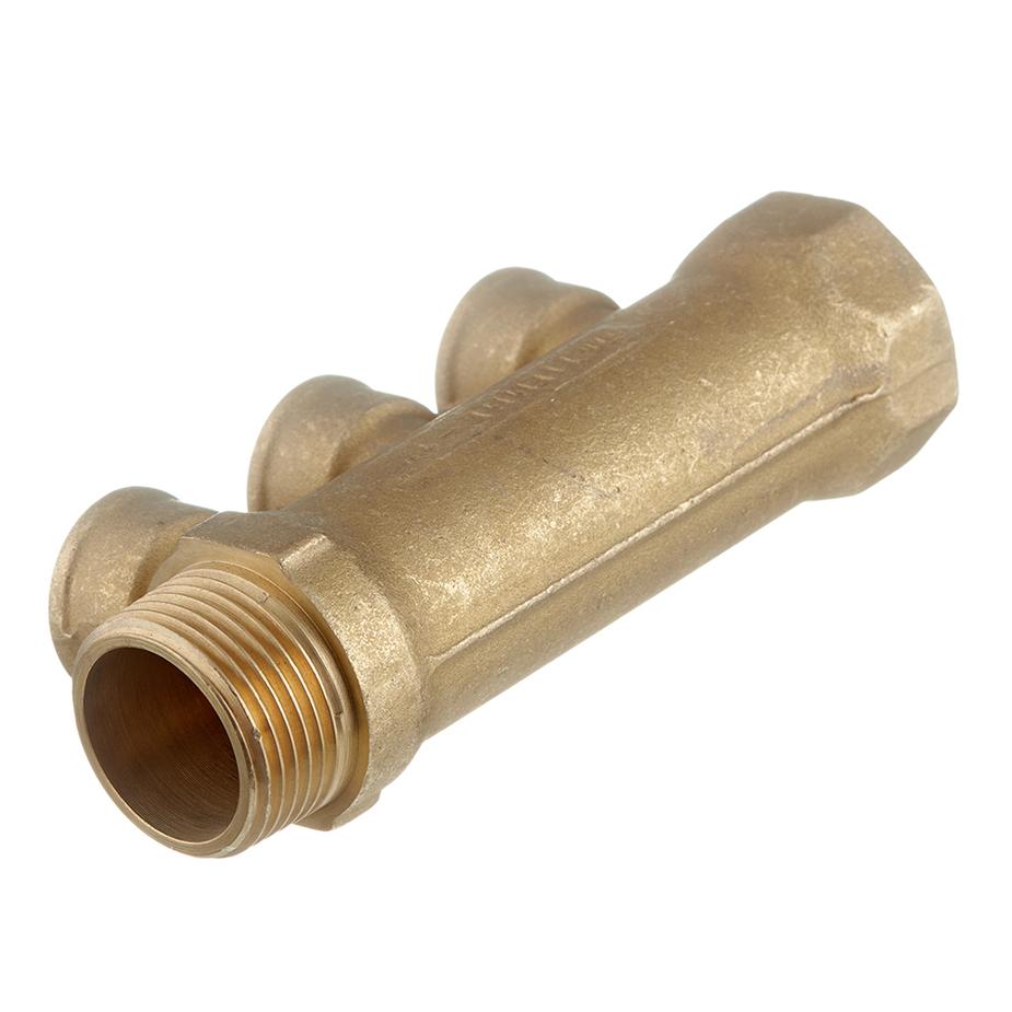 Предназначен для равномерного распределения и поступления воды от главного трубопровода по металлопластиковым трубам к сантехнике и другим потребителям без потери напора воды. Используется для разделения потока воды из одной трубы на три линии, путем присоединения металлопластиковых труб диаметром 16 мм при помощи соединителя прямого 16(пресс) х 1/2″ нар(ш). Имеет с одного входа внутреннюю резьбу 1″ (25 мм) с другого входа наружную резьбу 1″ (25 мм), что позволяет соединять коллекторы между собой, увеличивая количество отводимых линий. Межосевое расстояние между отводами 36 мм.