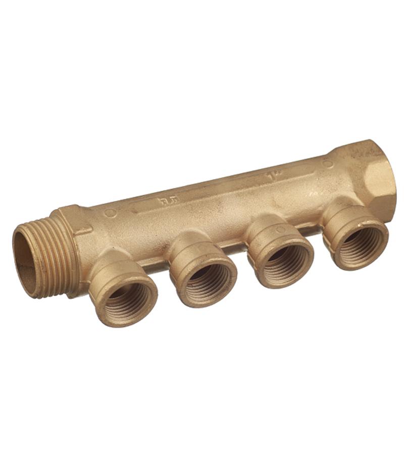 Предназначен для равномерного распределения и поступления воды от главного трубопровода по металлопластиковым трубам к сантехнике и другим потребителям без потери напора воды. Используется для разделения потока воды из одной трубы на четыре линии, путем присоединения металлопластиковых труб диаметром 16 мм при помощи соединителя прямого 16(пресс) х 1/2″ нар(ш). Имеет с одного входа внутреннюю резьбу 1″ (25 мм) с другого входа наружную резьбу 1″ (25 мм), что позволяет соединять коллекторы между собой, увеличивая количество отводимых линий. Межосевое расстояние между отводами 36 мм.