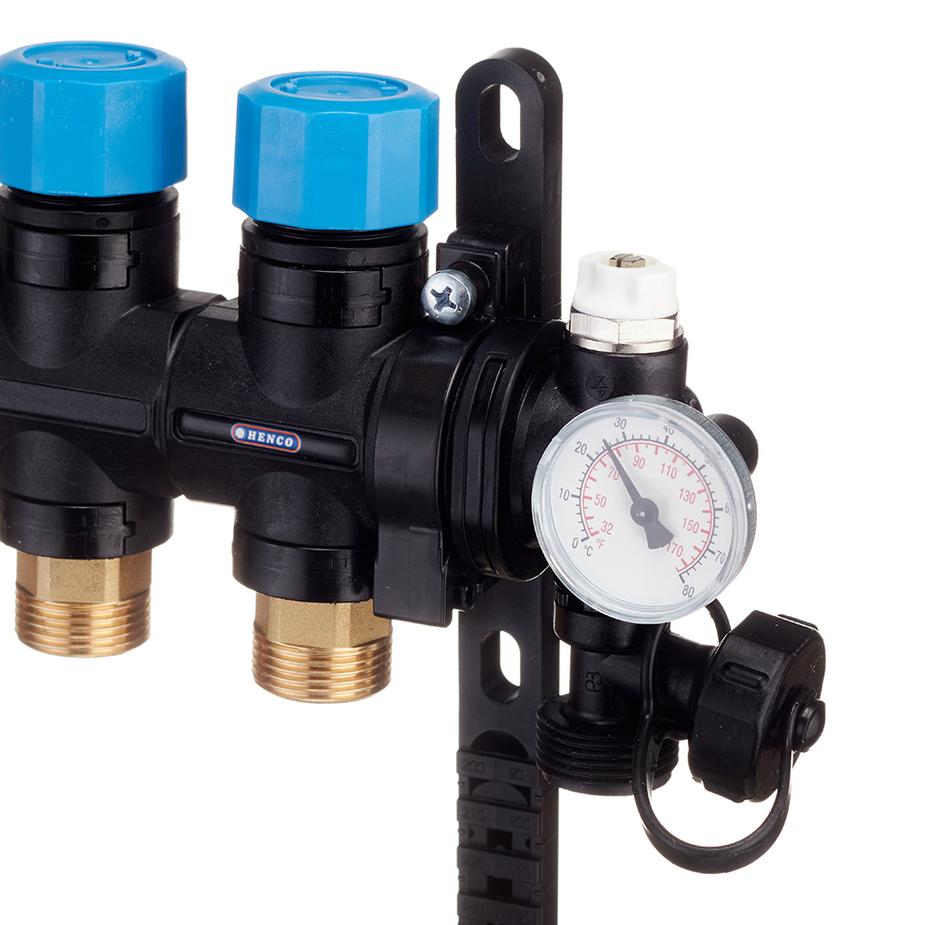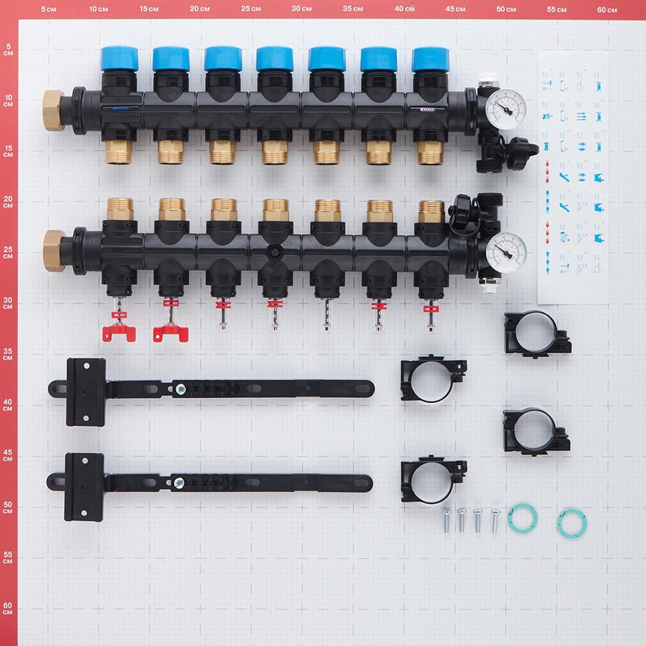 Предназначена для распределения потоков теплоносителя в системах радиаторного или напольного отопления. Состоит из подающего коллектора с расходомерами и обратного – с термостатическими клапанами, на которые можно установить электротермические сервоприводы. Позволяет проводить регулировку отдельно в каждом контуре системы. Присоединение труб осуществляется с помощью фитингов стандарта «евроконус».