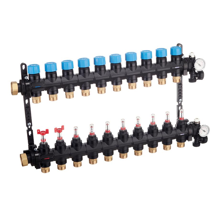 Коллекторная группа Henco (UFH-0605MDK10-03L) 1 ВР(г) х 10 выходов 3/4 НР(ш) ЕК х 1 ВР(г) с расходомерами композитная