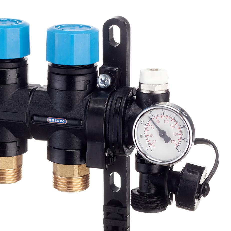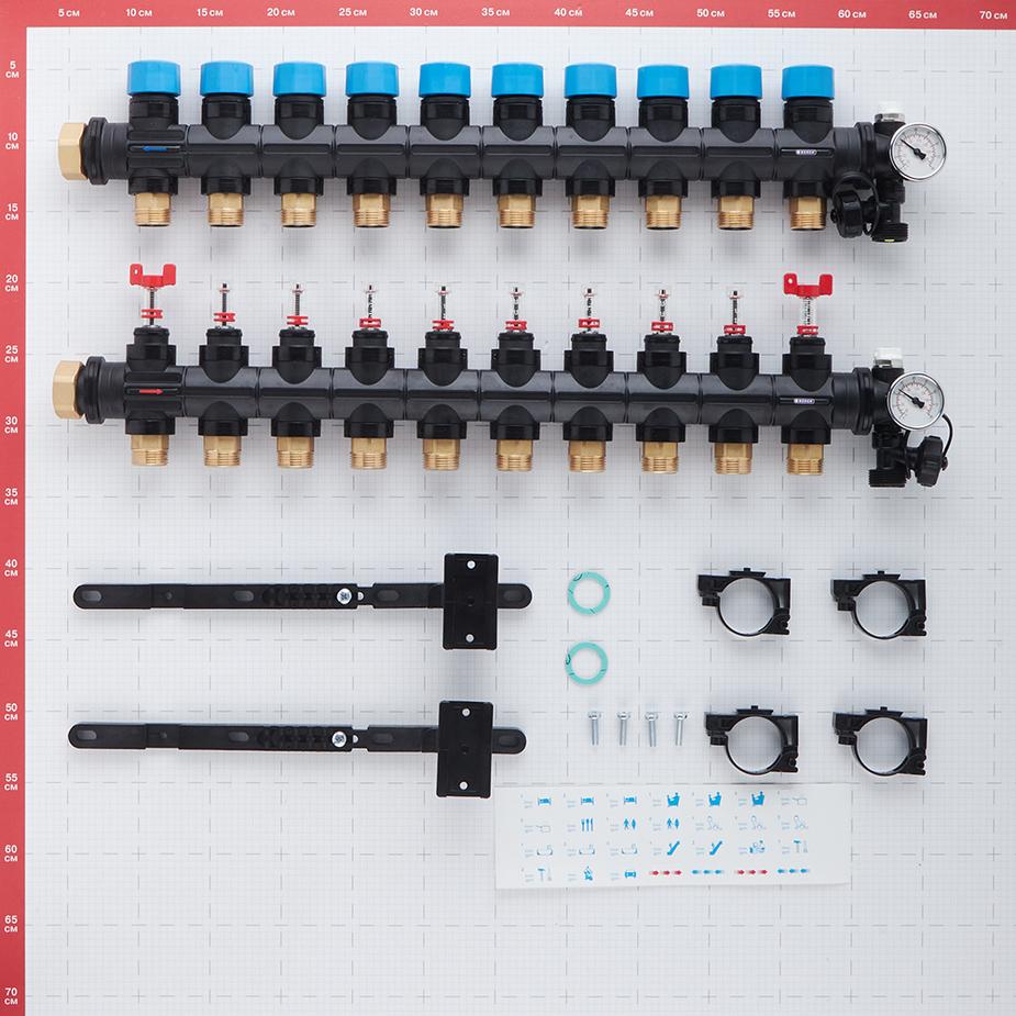 Предназначена для распределения потоков теплоносителя в системах радиаторного или напольного отопления. Состоит из подающего коллектора с расходомерами и обратного – с термостатическими клапанами, на которые можно установить электротермические сервоприводы. Позволяет проводить регулировку отдельно в каждом контуре системы. Присоединение труб осуществляется с помощью фитингов стандарта «евроконус».