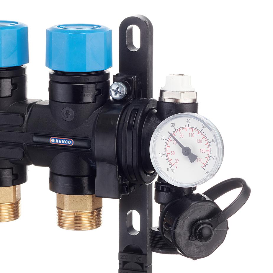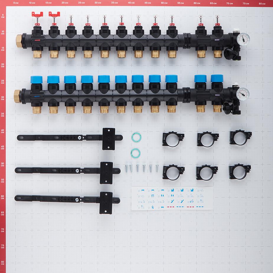 Предназначена для распределения потоков теплоносителя в системах радиаторного или напольного отопления. Состоит из подающего коллектора с расходомерами и обратного – с термостатическими клапанами, на которые можно установить электротермические сервоприводы. Позволяет проводить регулировку отдельно в каждом контуре системы. Присоединение труб осуществляется с помощью фитингов стандарта «евроконус».