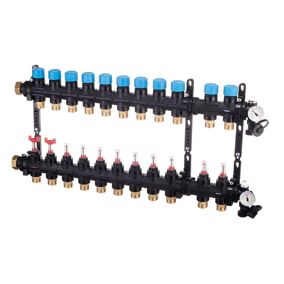 Коллекторная группа Henco (UFH-0605MDK11-03L) 1 ВР(г) х 11 выходов 3/4 НР(ш) ЕК х 1 ВР(г) с расходомерами композитная