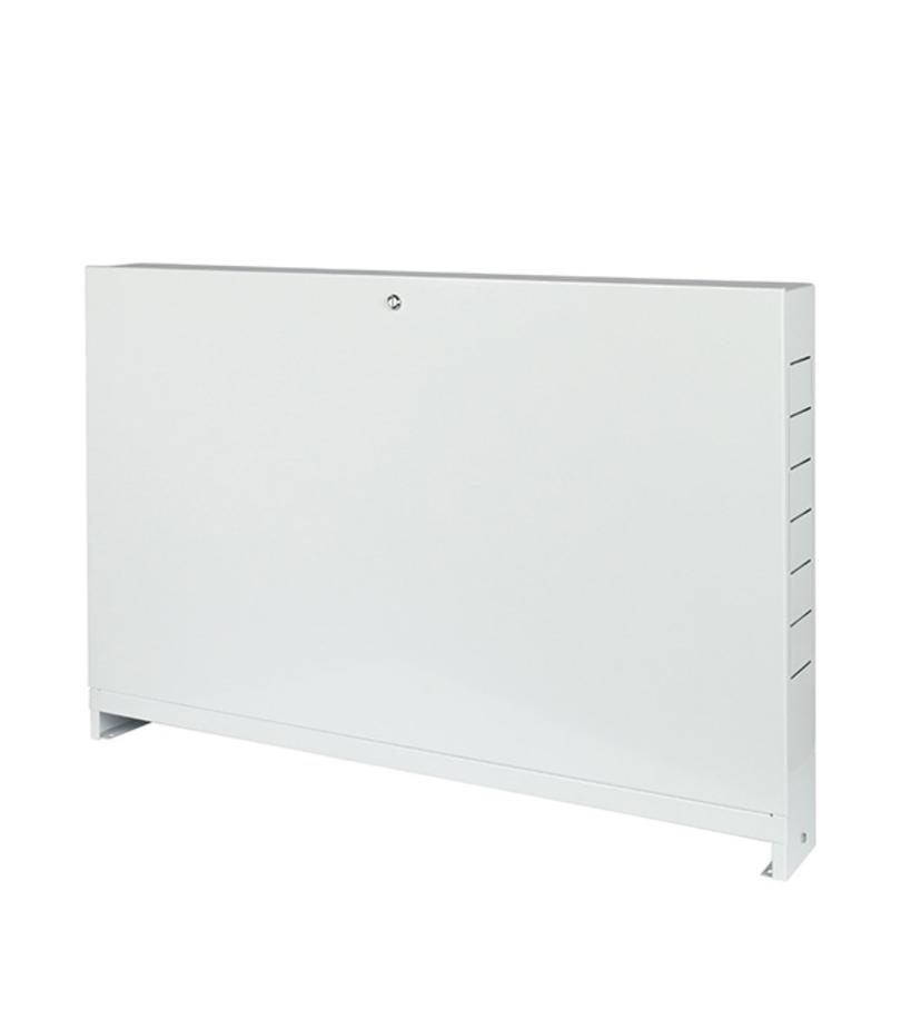 Предназначен для монтажа в нем коллекторов систем отопления и водоснабжения. В боковых стенках корпуса шкафа выполнена перфорация, сегменты которой удаляются в любом удобном месте для подсоединения трубопроводов. Внутри шкафа установлены универсальные профильные крепления, позволяющие располагать оборудование по всей высоте и ширине шкафа. Шкаф имеет регулировки по высоте до 40 мм за счет выдвижных ножек. Крепление шкафа к полу осуществляется с помощью отверстий в выдвижных ножках, а к стене – с помощью отверстий в задней стенке. Для защиты от несанкционированного доступа шкаф оснащен внутренним замком «под монетку».