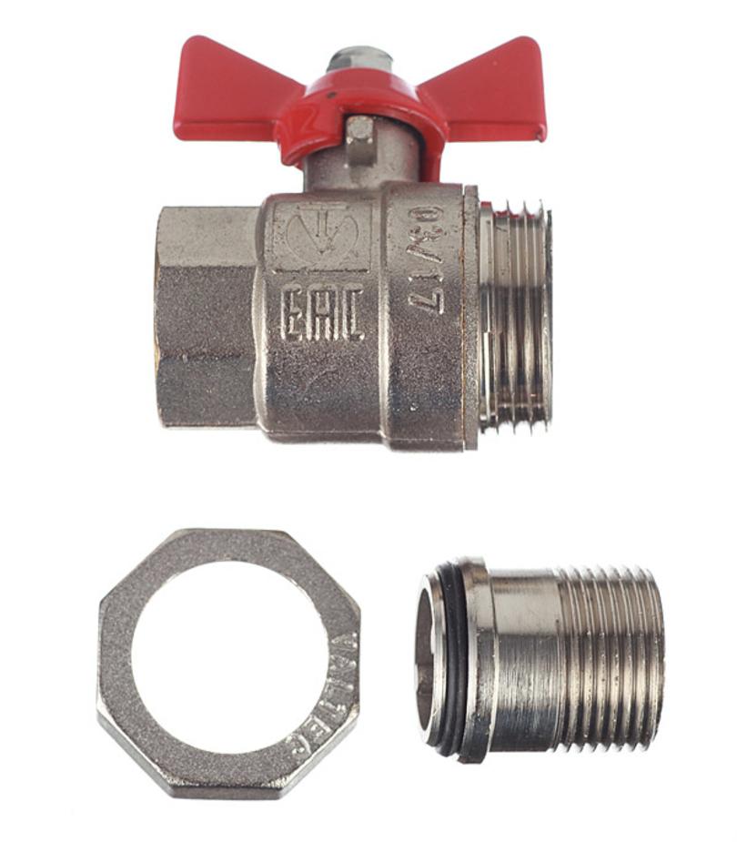 Кран шаровой латунный VALTEC Base (VT.227.N.05) 3/4 ВР(г) х 3/4 НР(ш) бабочка с полусгоном прямой