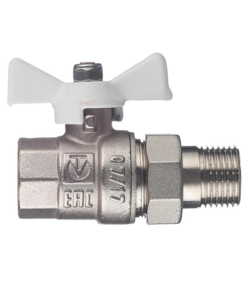 Кран шаровой латунный VALTEC Base (VT.227.NW.04) 1/2 ВР(г) х 1/2 НР(ш) бабочка с полусгоном прямой