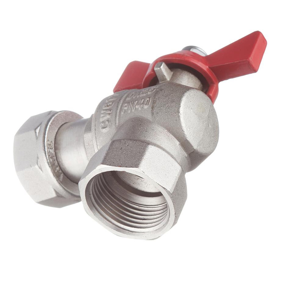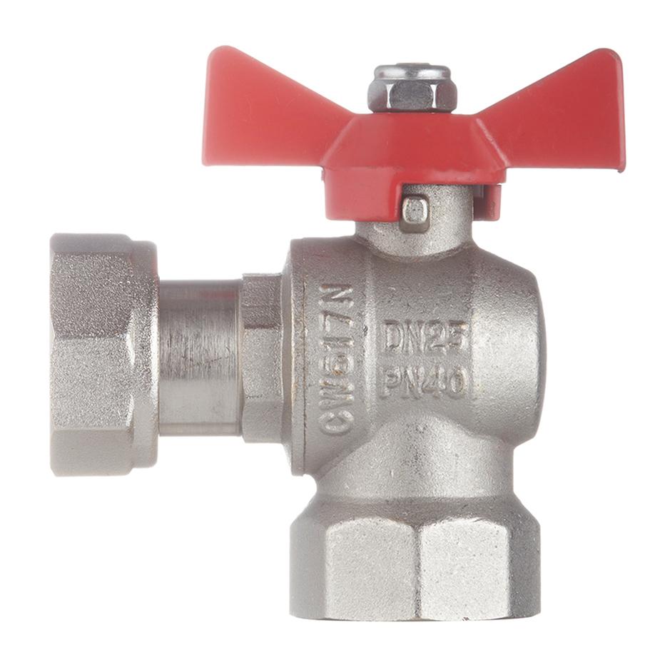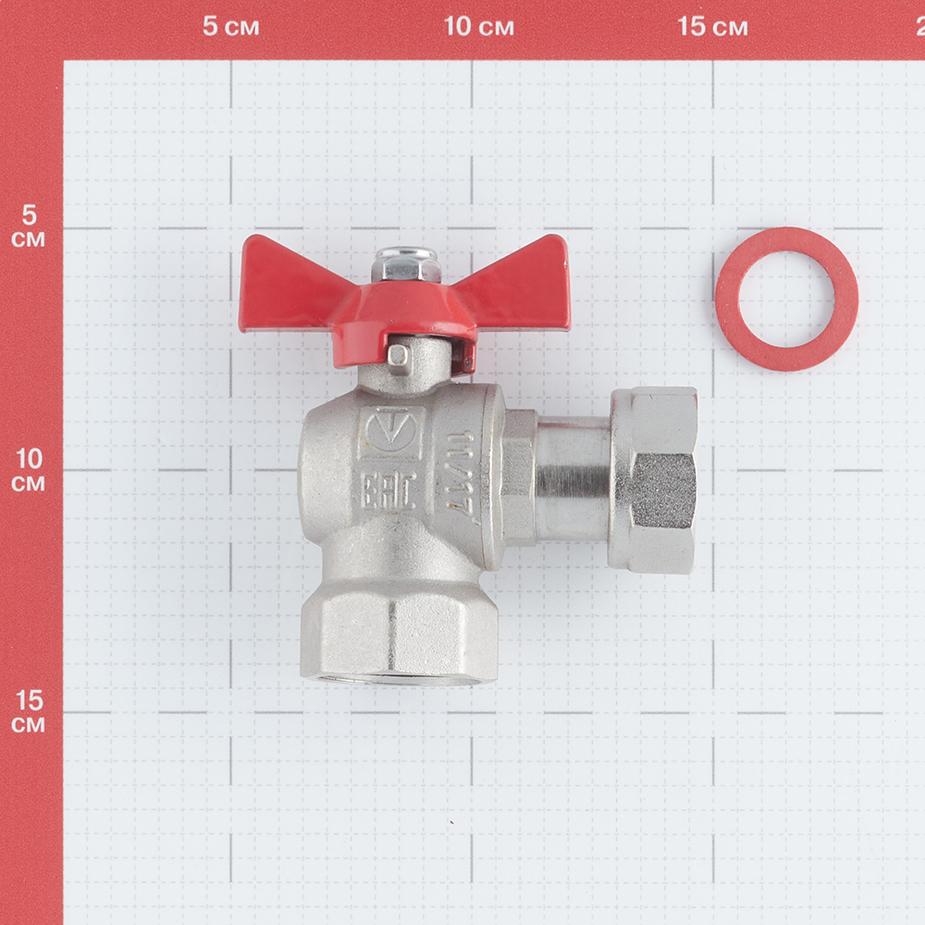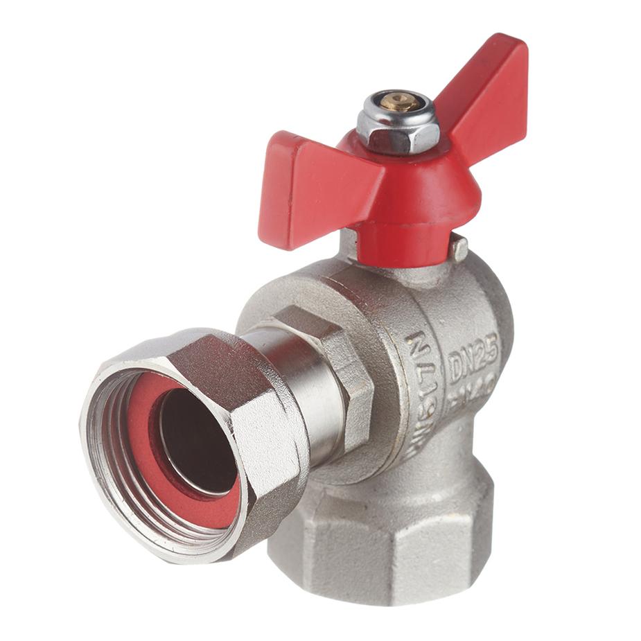 Кран шаровой латунный VALTEC Base (VT.266.N.0606) 1 ВР(г) T-образный бабочка с накидной гайкой угловой