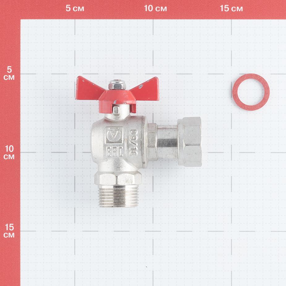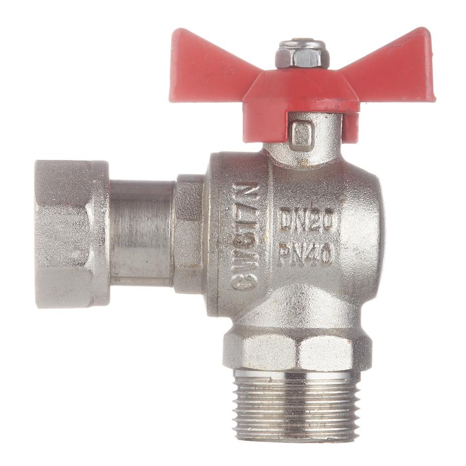 Кран шаровой латунный VALTEC Base (VT.267.N.0505) 3/4 ВР(г) T-образный бабочка с накидной гайкой угловой
