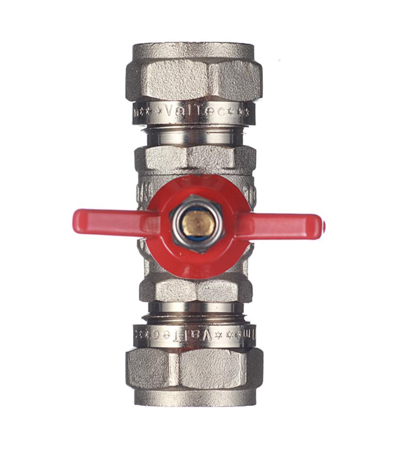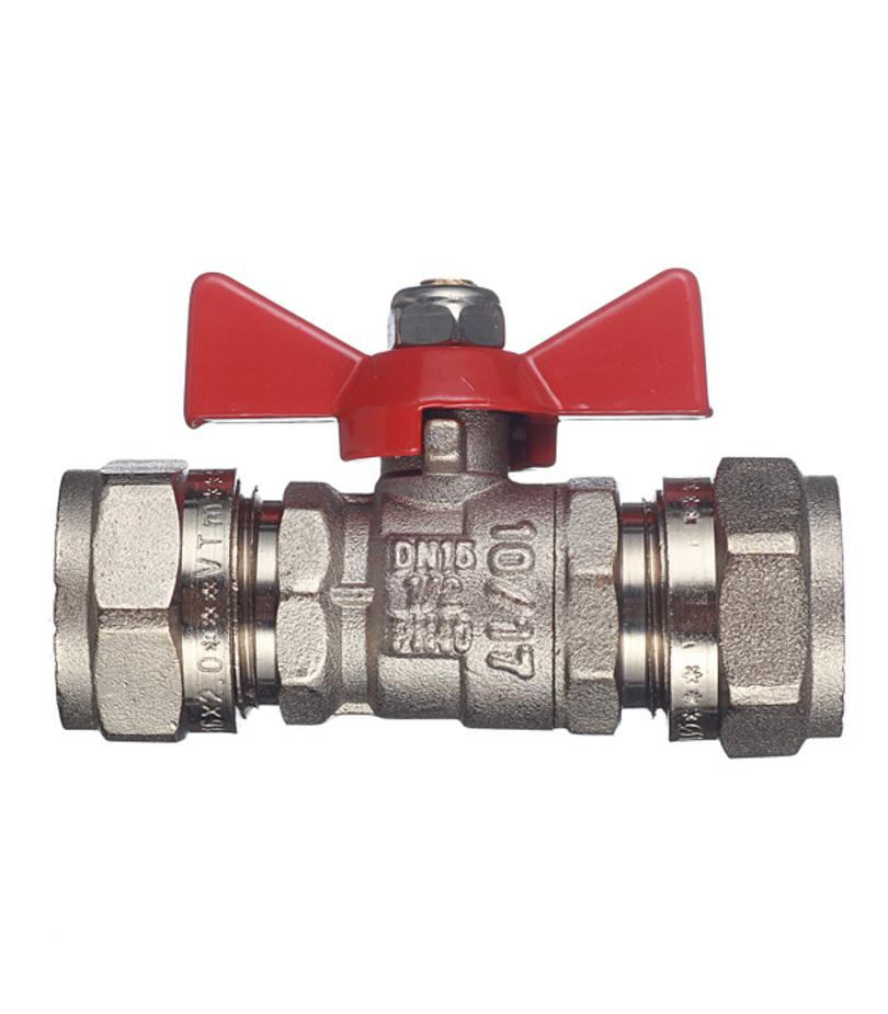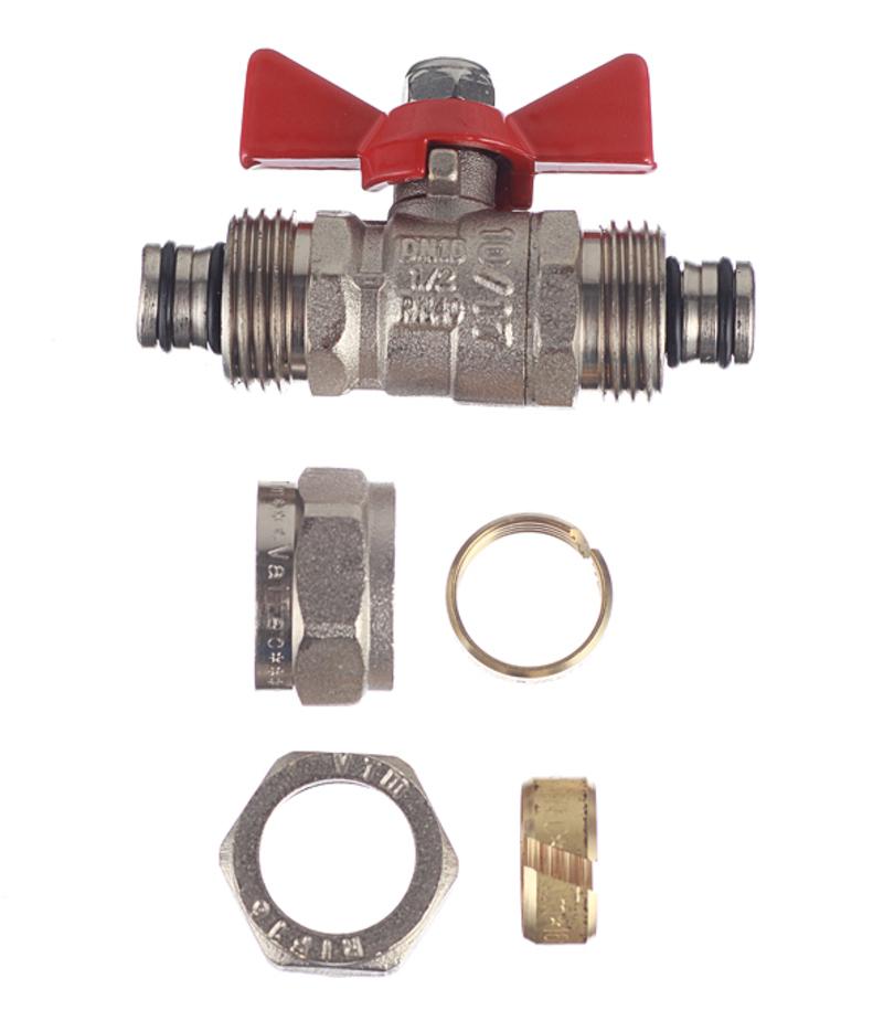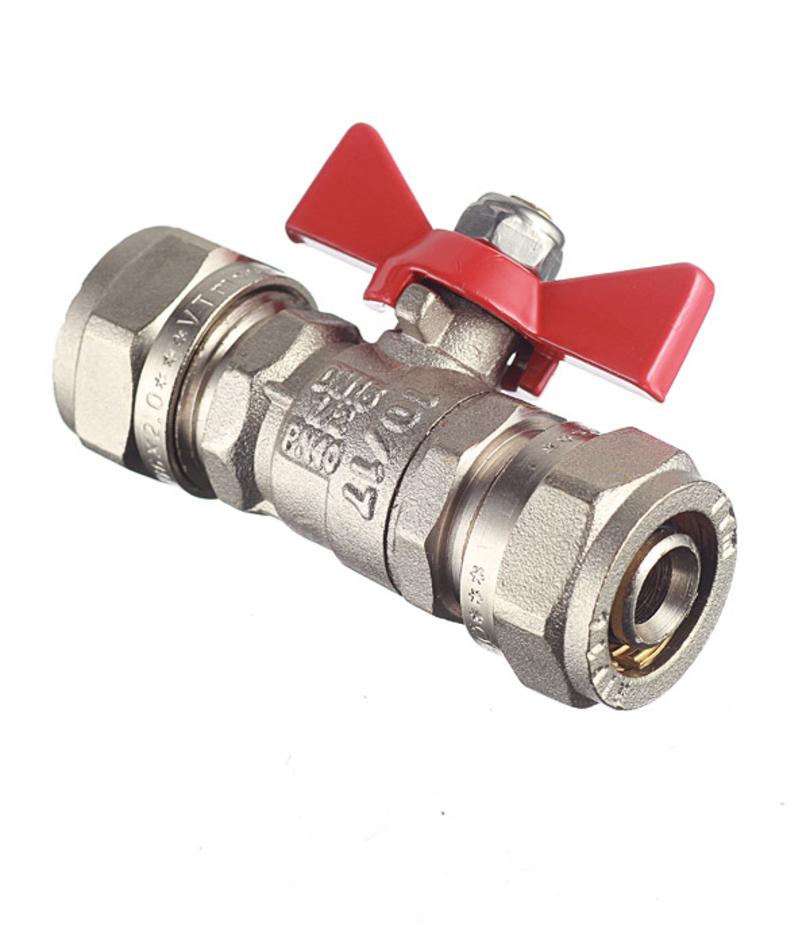 Кран шаровой латунный VALTEC (VT.343.N.1616) 16 обж(ц) для металлопластиковых труб бабочка прямой