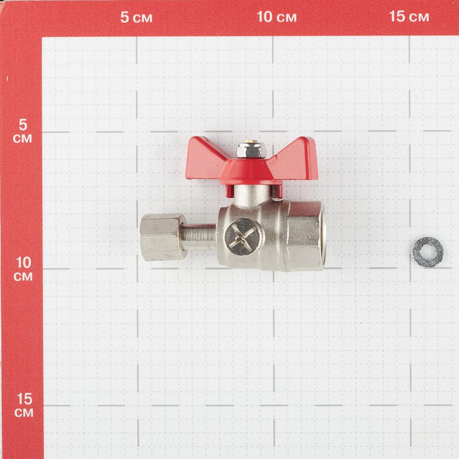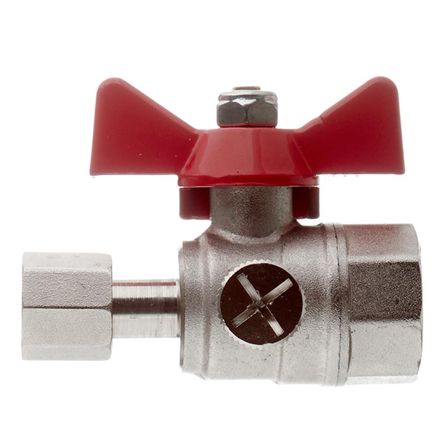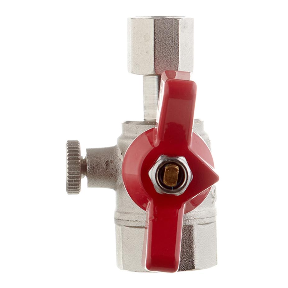 Кран шаровой латунный VALTEC (VT.807.N.0402) 1/2 ВР(ш) х 1/4 ВР(г) для подключения манометра проходной бабочка прямой
