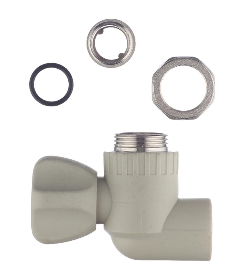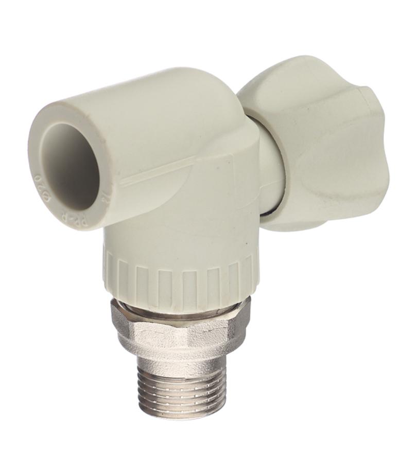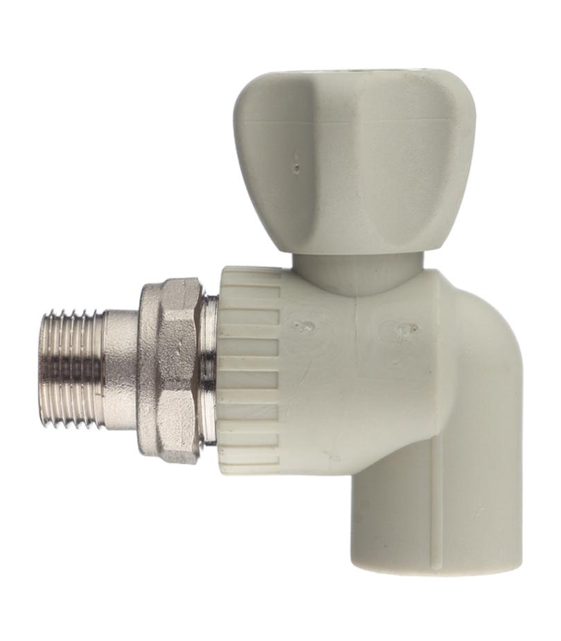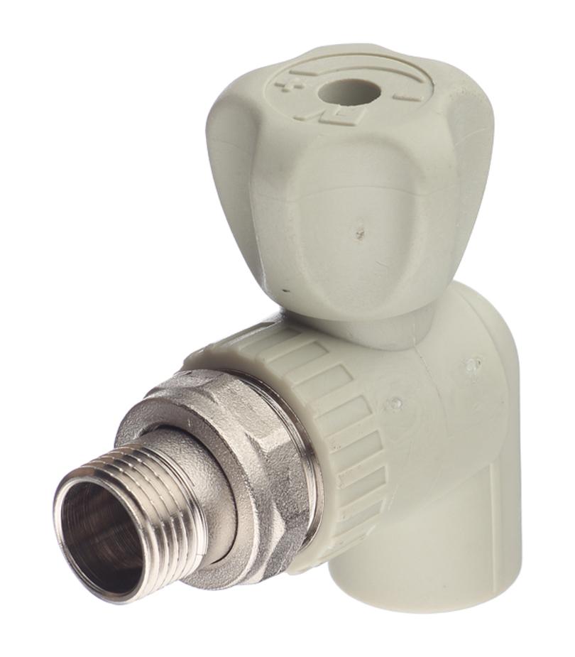 Кран шаровой полипропиленовый FV-PLAST (А315020000) 20 мм х 1/2 НР(ш) для радиатора угловой серый