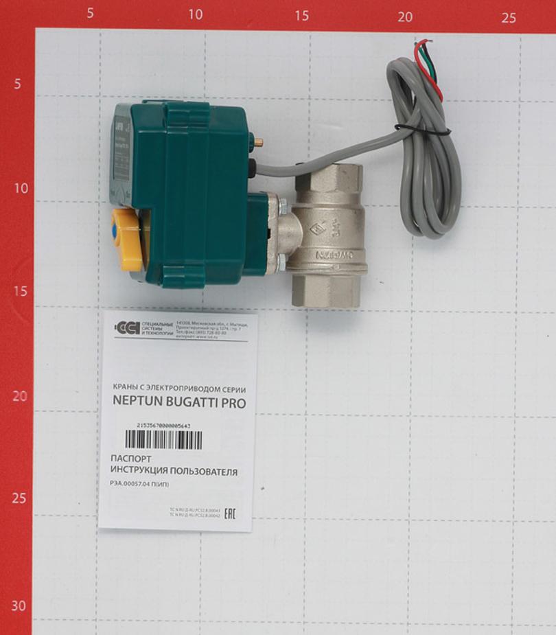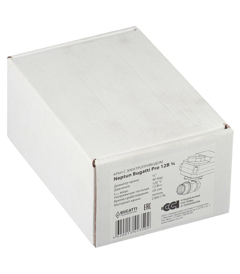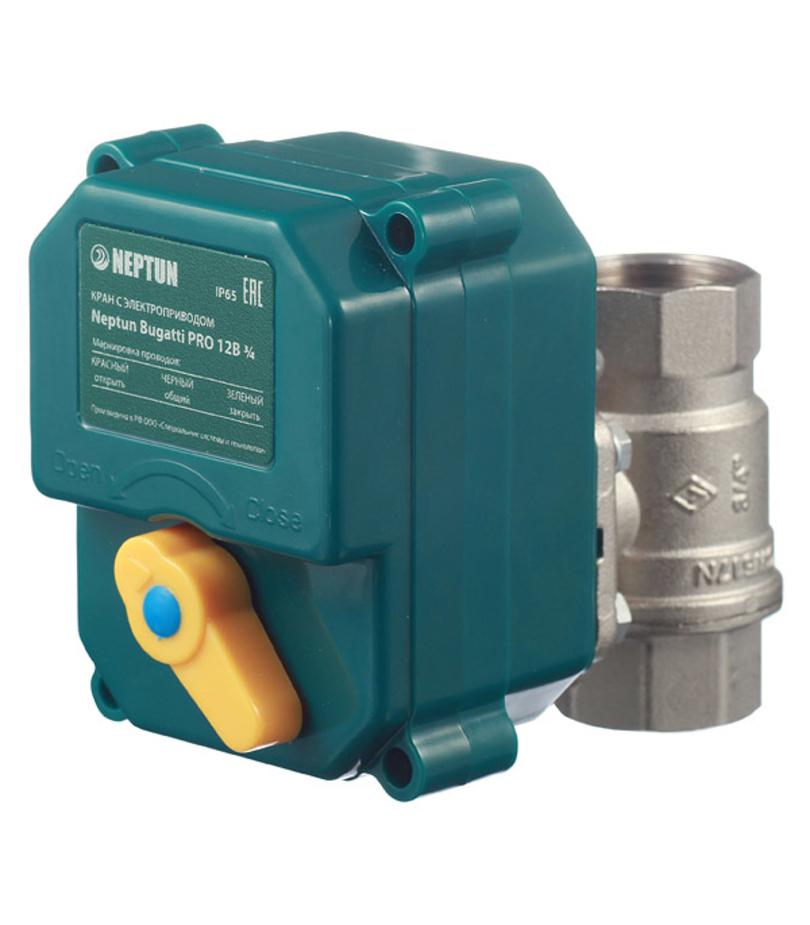 Кран шаровой с электроприводом латунный Neptun Bugatti Pro (NEPBugPro12-34) 3/4 ВР(г) х 3/4 ВР(г) мини прямой 12 В