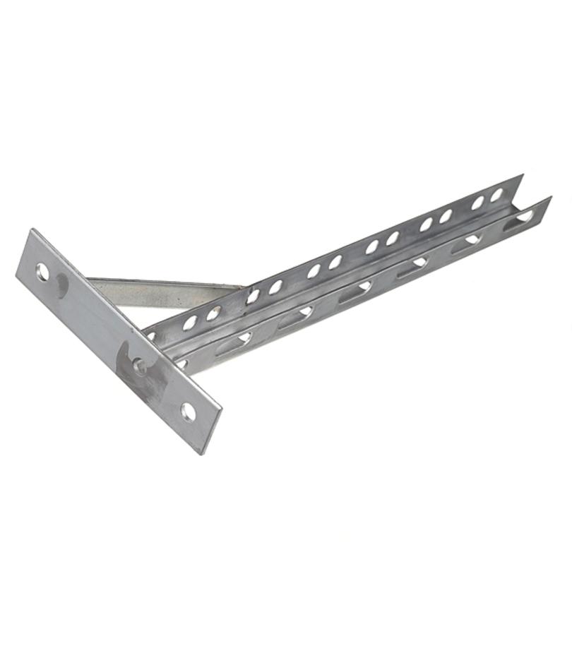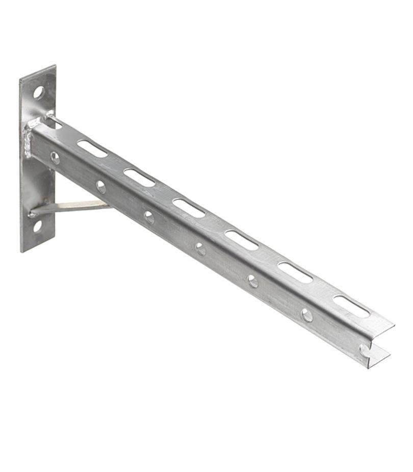 Предназначен для крепления кондиционеров, проводов, легких подвесных конструкций к стене. Максимально допустимая нагрузка 250 кг. Имеет отверстия диаметром на крепежной планке (сторона, которая крепится к стене) – 12 мм под анкер или болт, на верхней сторона П-образного профиля – 10 мм (технологические), на нижней стороне П-образного профиля – 12 мм под анкер или болт, на верхней стороне П-образного профиля (продолговатое) – 12х33 мм под болт или шпильку с возможностью регулировки. Расшифровка маркировки 400 мм – длина крепежной полки, 180 мм – длина основания, 30 мм – ширина профиля, 2 мм – толщина.