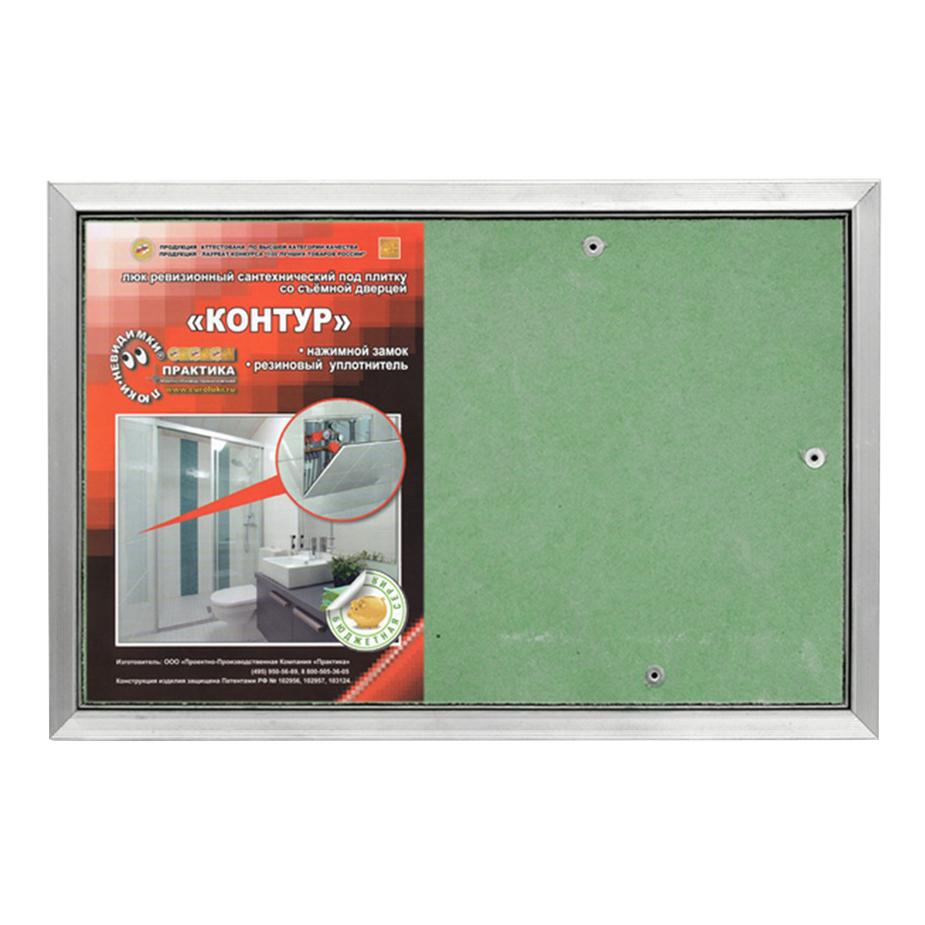 Люк ревизионный под плитку Практика Контур алюминиевый 500х400 мм скрытый нажимной