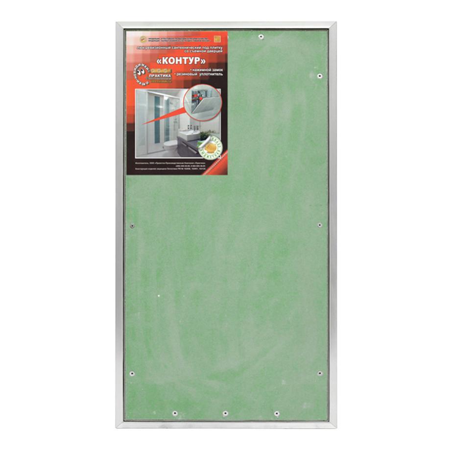 КОНТУР КР 300х600 Нажимной люк со съемной дверцей КР 30-60, с шириной 300 мм и высотой 600 мм, предназначен для доступа или к счётчикам, или к кранам холодной/горячей воды, или к сливу под ванной. Глубина люка в 52 мм и отсутствие выступающих элементов петли помогают экономить каждый миллиметр свободного пространства. Съемная дверца люка 273х573 мм открывается на 25° и затем снимается. Дверца может быть облицована керамической плиткой и другими отделочными материалами. Лепестковый уплотнитель по периметру дверцы, надежно защищает от пыли и влаги и обеспечивает звукоизоляцию.