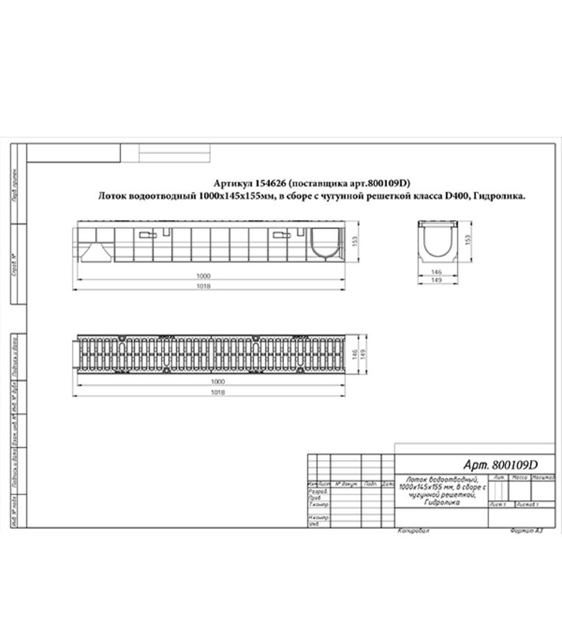 Лоток водоотводный 1000х145х155 мм сборе с чугунной решеткой класс D400 Гидролика предназначен для применения в зоне проезда грузовых автомобилей грузоподъемностью до 10-15 тонн, т.е. на въезде на участок если предполагается проезд грузового транспорта, на дорогах коттеджных поселков, а так же на парковках. Комплект лотка с чугунной решеткой класса D400 – это готовое к установке решение, имеет возможность соединения их между собой в линию требуемой протяженности. Выпуск собранной воды осуществляться путем подключения канализационной трубы Ф110 мм к специально предусмотренному фланцу в дне лотка. При необходимости возможно осуществить угловое соединение данных лотков с помощью специального фланца для углового соединения расположенного на боковых поверхностях лотка.