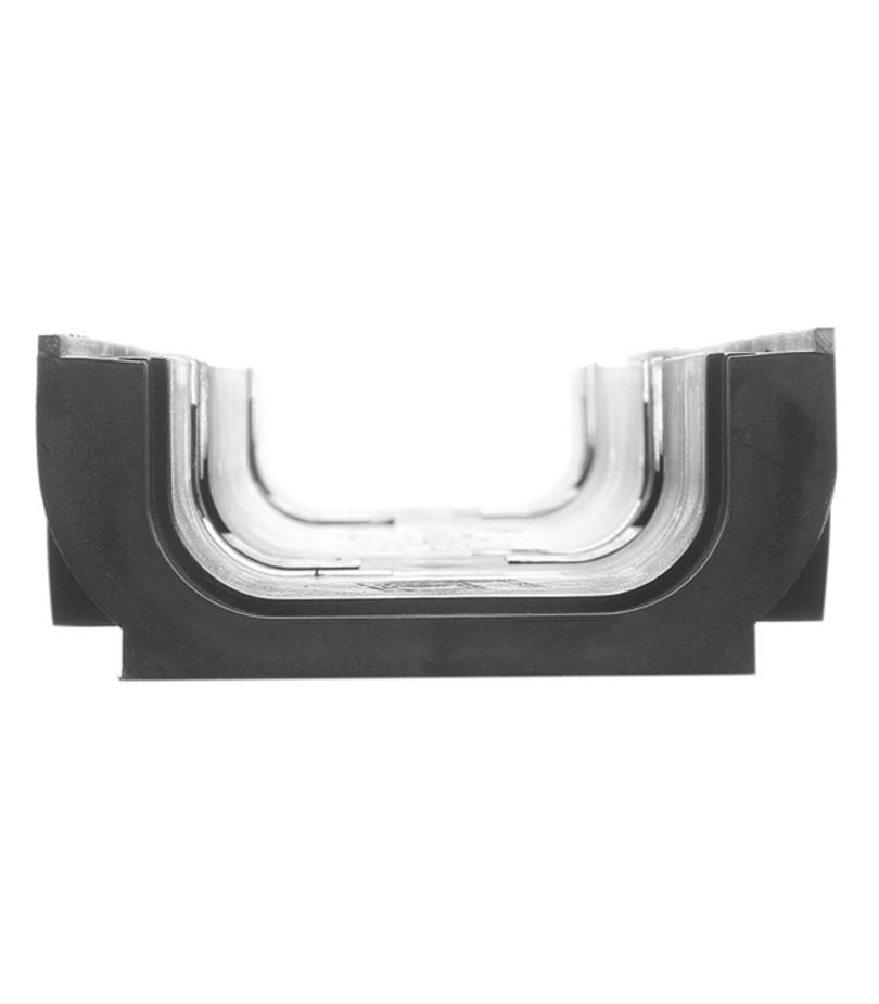 Предназначен для поверхностного водоотвода ливневых и талых вод в зонах с ограничением глубины заложения, например: в частном строительстве на террасах, балконах, в городах на подземных паркингах и кровле. Класс С250 (класс выбранной решетки на данном лотке может быть от А15 до С250 и будет являться определяющим для несущей способности системы). Также лотки с небольшой высотой могут быть установлены в зонах где не требуется большая пропускная способность лотка, в этом случае это будет более экономичное решение, чем применение лотков с большей высотой. Лоток для обеспечения безопасного движения через него рекомендуется накрывать решеткой в соответствии с предполагаемыми нагрузками в зоне заложения. Это могут быть чугунные решетки класса С250, для проезда легковых автомобилей, либо стальные штампованные оцинкованные или пластиковые решетки для зон пешеходной нагрузки. Все решетки к лоткам рекомендовано закрепить крепежом. Данные лотки имеют возможность соединения их между собой в линию требуемой протяженности. Выпуск собранной воды осуществляться путем подключения канализационной трубы d110 мм к специально предусмотренному фланцу в дне лотка. А также возможно осуществить угловое соединение данных лотков с помощью специального фланца для углового соединения расположенного на боковой поверхности лотка.