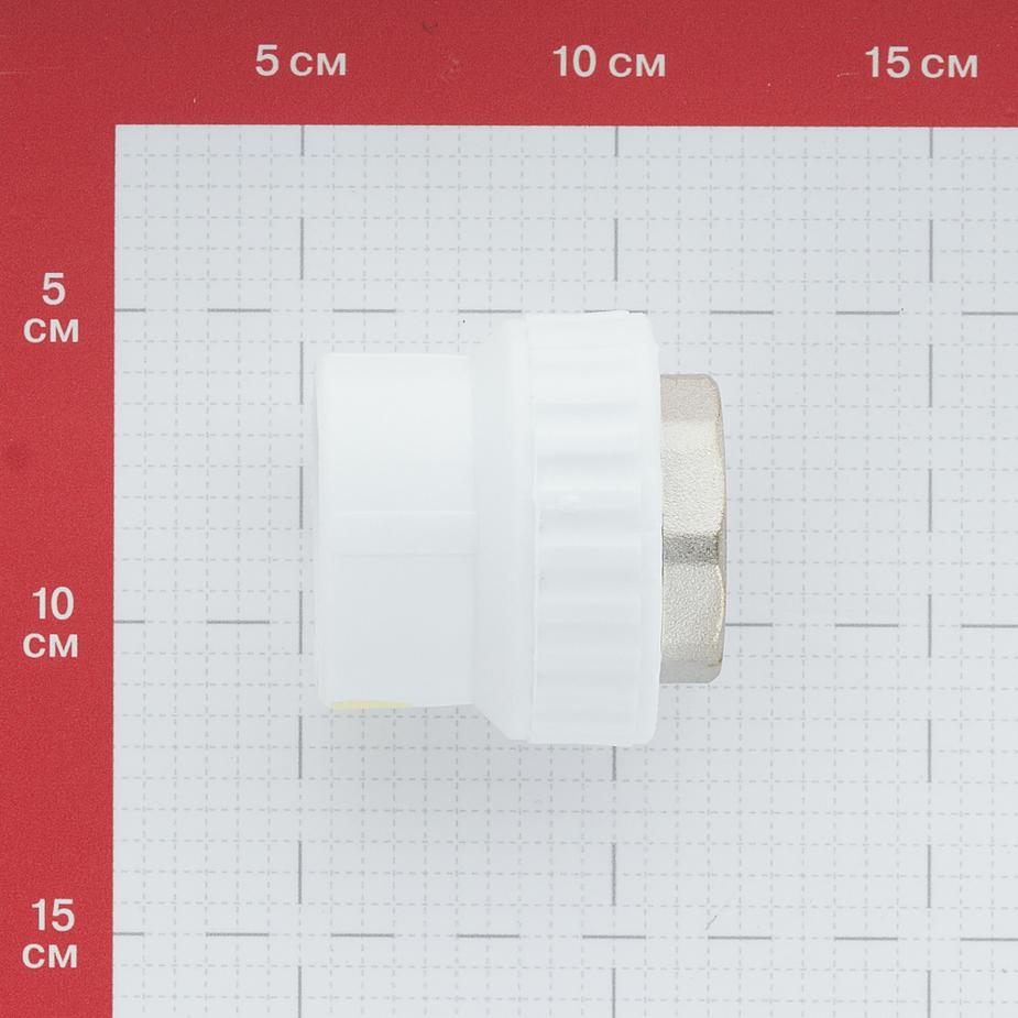 Предназначена для соединения полипропиленовой трубы диаметром 40 мм и фитинга диаметром 1.1/4″ с наружной резьбой. Имеет дополнительные ребра, благодаря которым муфту можно подкручивать гаечным либо разводным ключом. Состав полипропилен, латунь. Расшифровка маркировки 40 – диаметр присоединяемой трубы в мм, 1.1/4″ – диаметр условного прохода в дюймах (32 мм), ВР – внутренняя резьба. Производитель Россия.