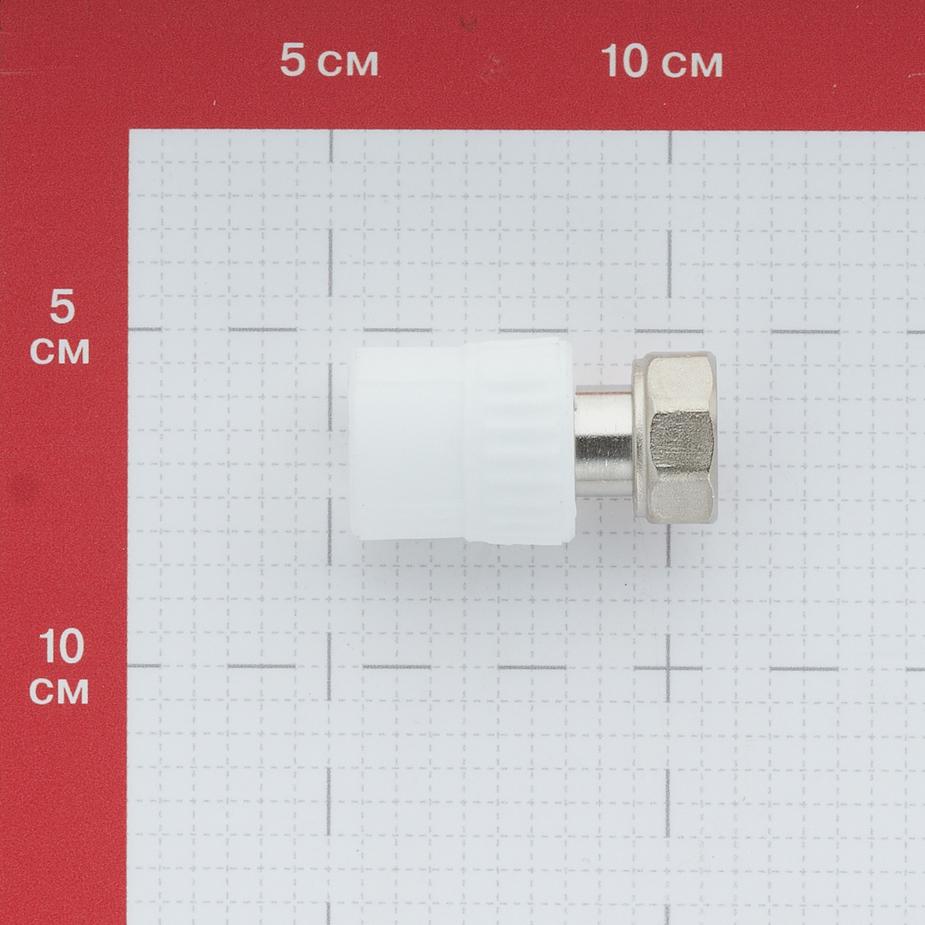 Предназначена для соединения полипропиленовой трубы диаметром 20 мм и фитинга диаметром 1/2″ с наружной резьбой путем стягивания. Применяется когда необходимо соединить два неподвижных элемента трубопровода. Состав полипропилен, латунь. Расшифровка маркировки 20 – диаметр присоединяемой трубы в мм, 1/2″– диаметр условного прохода в дюймах (16 мм), ВР – внутренняя резьба. Производитель Россия.