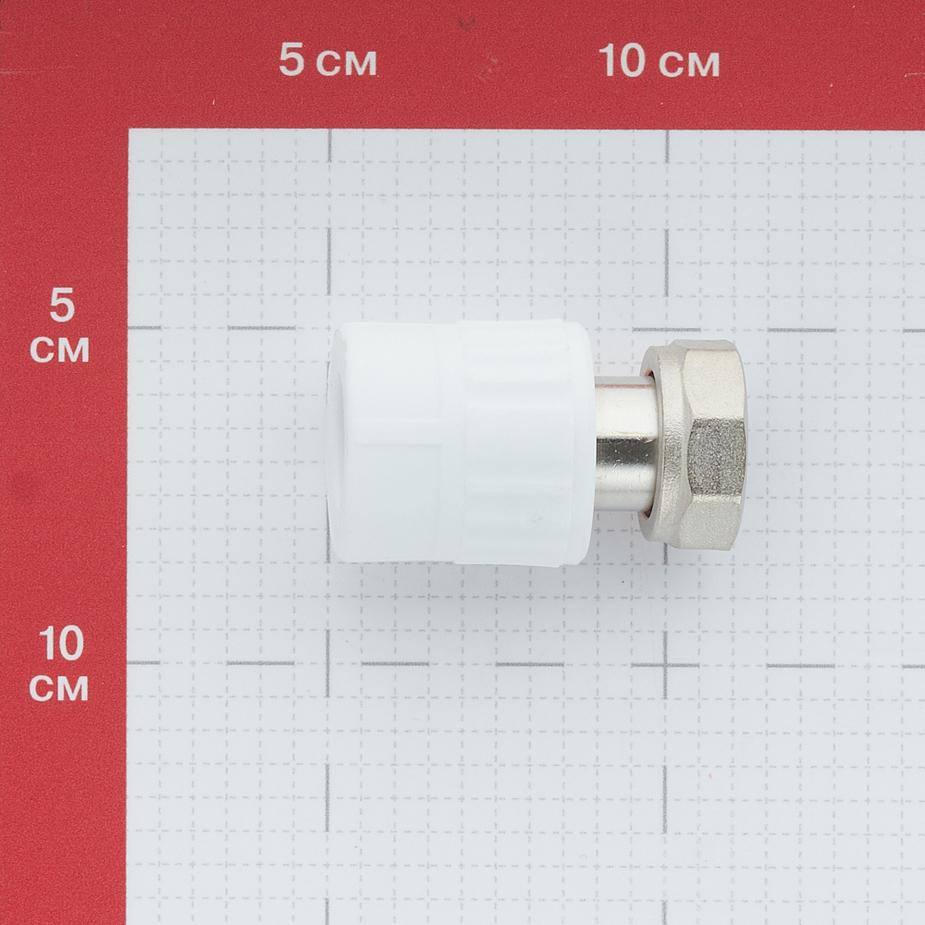 Предназначена для соединения полипропиленовой трубы диаметром 20 мм и фитинга диаметром 3/4″ с наружной резьбой путем стягивания. Применяется когда необходимо соединить два неподвижных элемента трубопровода. Состав полипропилен, латунь. Расшифровка маркировки 20 – диаметр присоединяемой трубы в мм, 3/4″– диаметр условного прохода в дюймах (20 мм), ВР – внутренняя резьба. Производитель Россия.