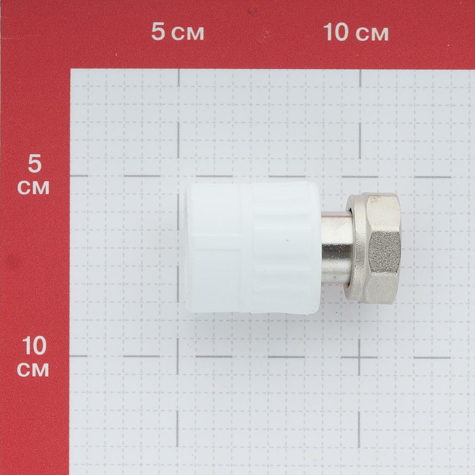 Предназначена для соединения полипропиленовой трубы диаметром 25 мм и фитинга диаметром 3/4″ с наружной резьбой путем стягивания. Применяется когда необходимо соединить два неподвижных элемента трубопровода. Состав полипропилен, латунь. Расшифровка маркировки 25 – диаметр присоединяемой трубы в мм, 3/4″– диаметр условного прохода в дюймах (20 мм), ВР – внутренняя резьба. Производитель Россия.
