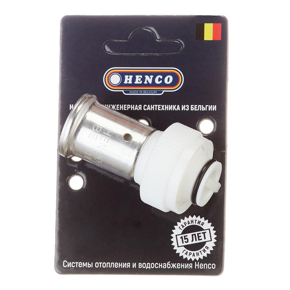 Муфта с накидной гайкой Henco (19PKW-2005) 20(пресс) х 3/4 ВР(г) под евроконус белая PVDF