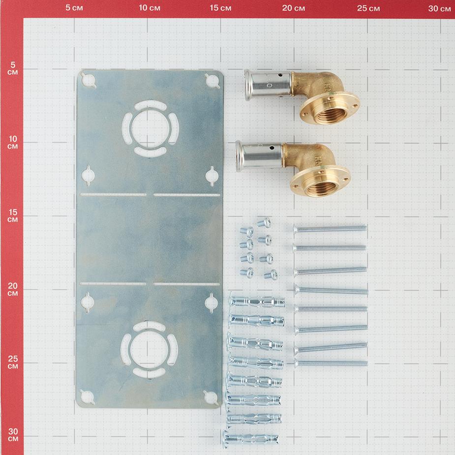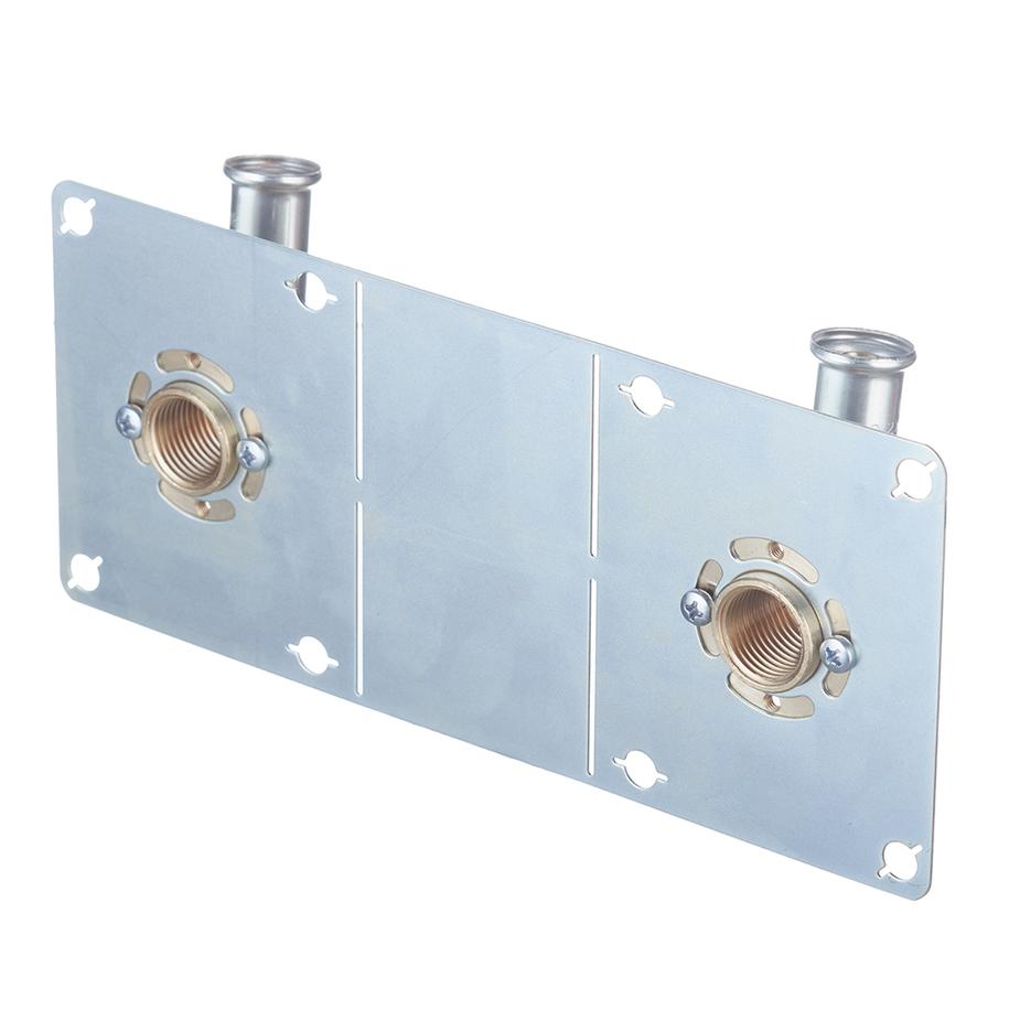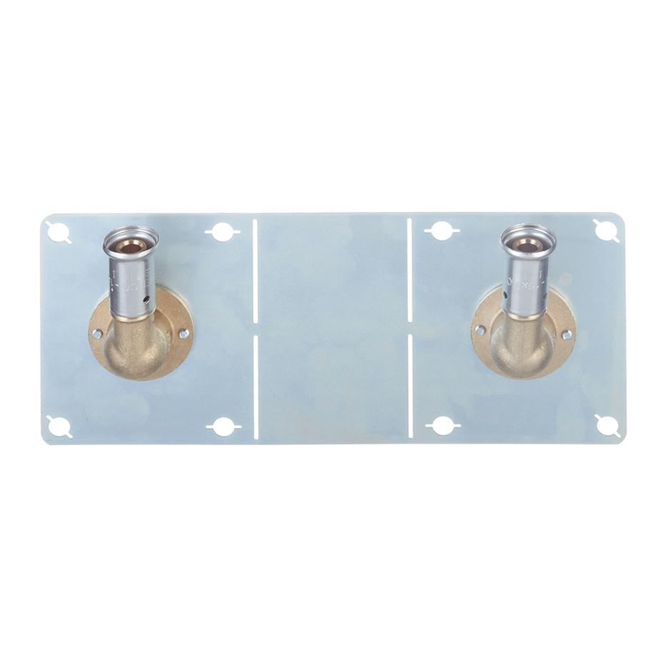 Предназначена для подключения смесителей со стандартным межосевым расстоянием к металлопластиковым трубам диаметром 16 мм способом опрессовки. Устанавливается на гипсокартонный лист и другие аналогичные материалы. Выходное соединение (в месте подсоединения к прибору) 1/2″ с внутренней резьбой.