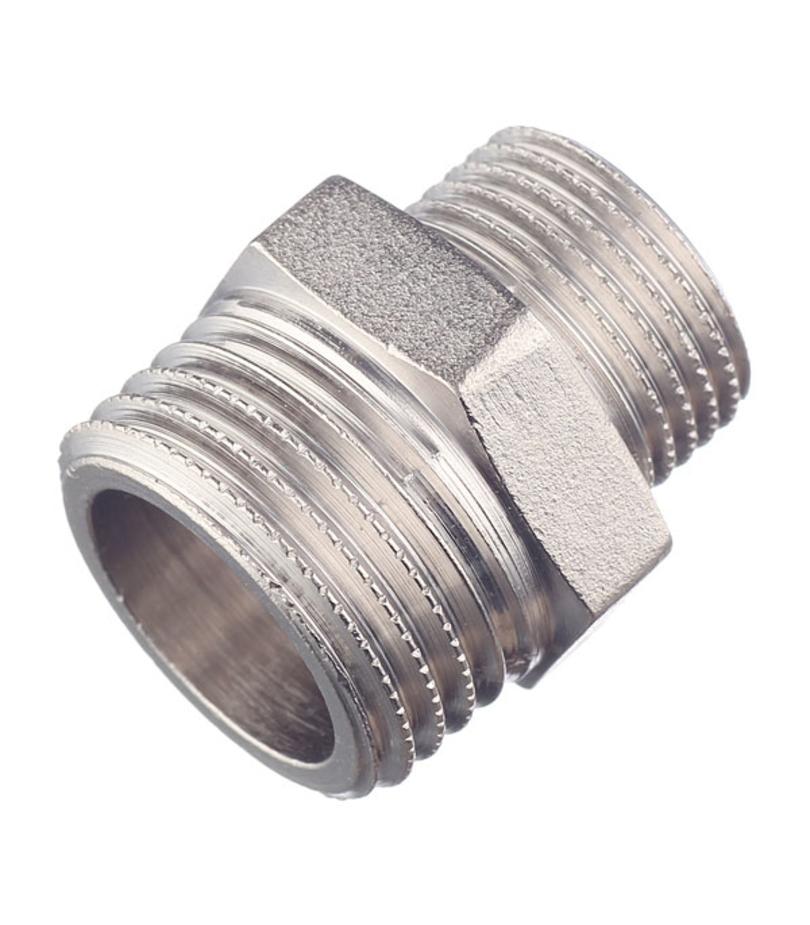 Предназначен для соединения металлопластиковых или полипропиленовых труб в системах водоснабжения и отопления. Имеет один выход с наружной резьбой 1/2″ (15 мм) и другой с наружной резьбой 3/8″ (10 мм). Состав латунь никелированная. Расшифровка маркировки ш – штуцер (наружная резьба). Производитель Италия.