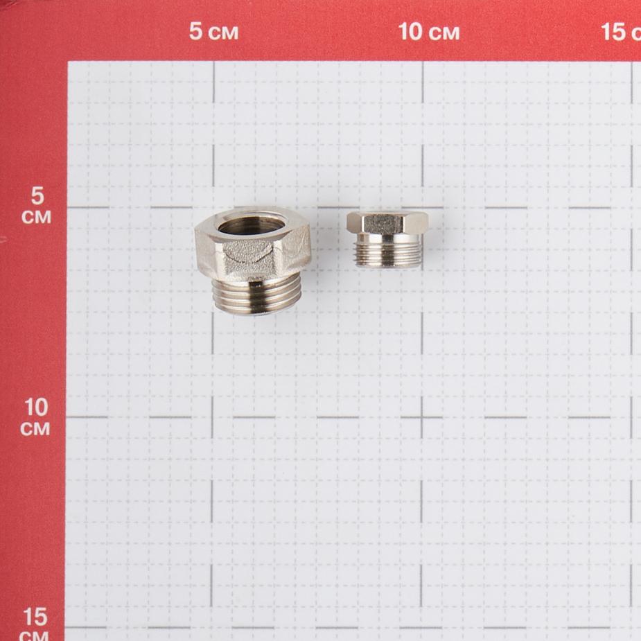 Латунный резьбовой переходник служит для заведения в трубопровод греющего кабеля с целью защиты транспортируемой среды от замерзания. Переходник включает в себя футорку, прижимную втулку и концевую обжимную резиновую манжету. Футорка и втулка выполнены из никелированной латуни CW617N, манжета – из эластомера EPDM Sh70. Рациональнее всего использовать переходник совместно с тройником косым VTr.136. В этом случае узел получается компактным, и греющий кабель заводится в трубу без перегиба. Переходник предназначен для использования в системах с рабочим давлением не выше 10 бар, максимальная температура рабочей среды – 110 °C. Размер резьбы – 1/2 дюйм.